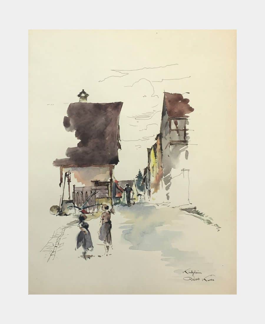 Kintzheim. Robert Kuven (Strasbourg, 1901 – 1983, Strasbourg). Aquarelle. Titrée et signée en bas à droite. Format du feuillet : 326 x 250 mm.