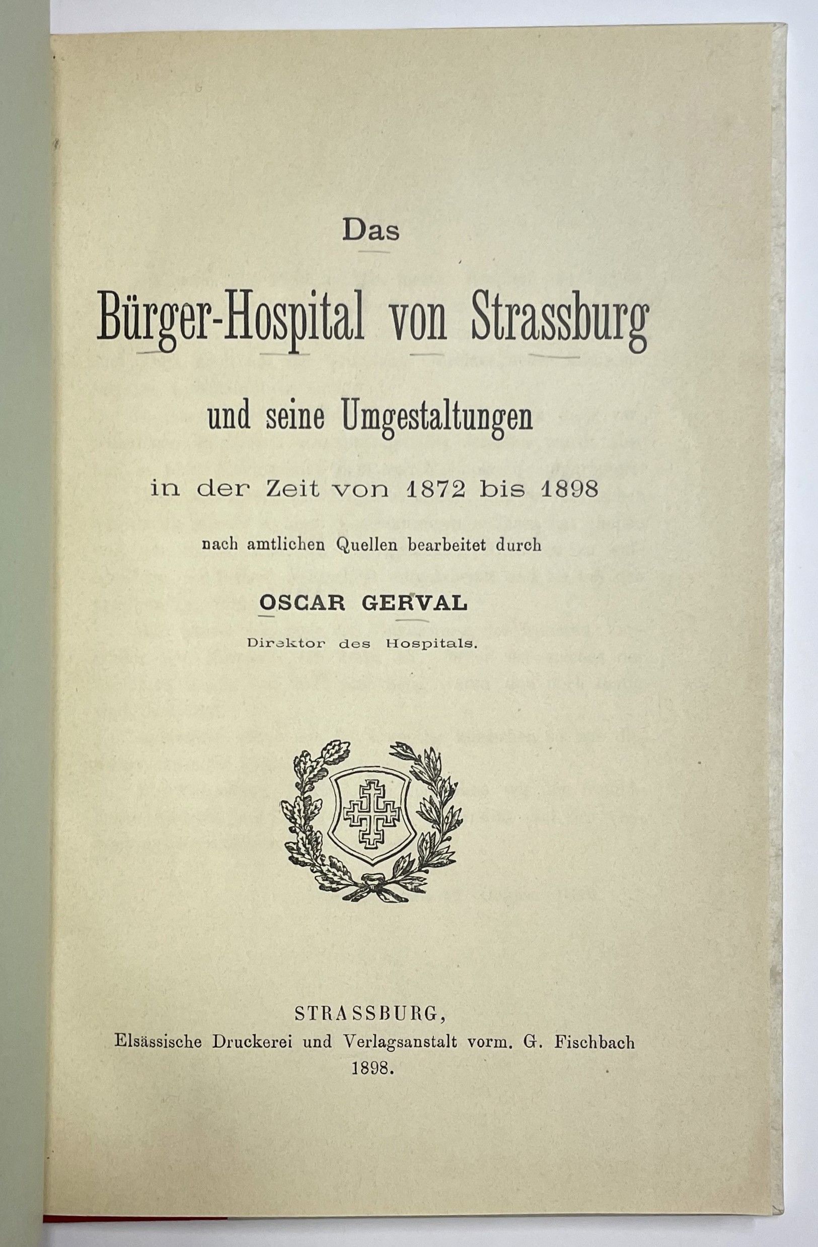 Das Bürger-Hospital von Strassburg und seine Umgestaltungen in der Zeit von 1872 bis 1898 nach amtlichen Quellen bearbeitet dur Oscar Gerval. GERVAL (Oscar). 1898.