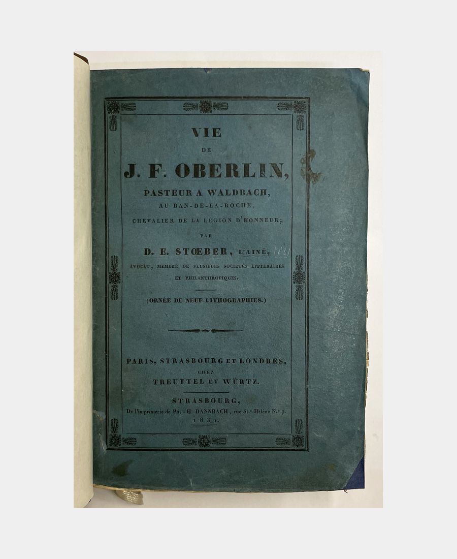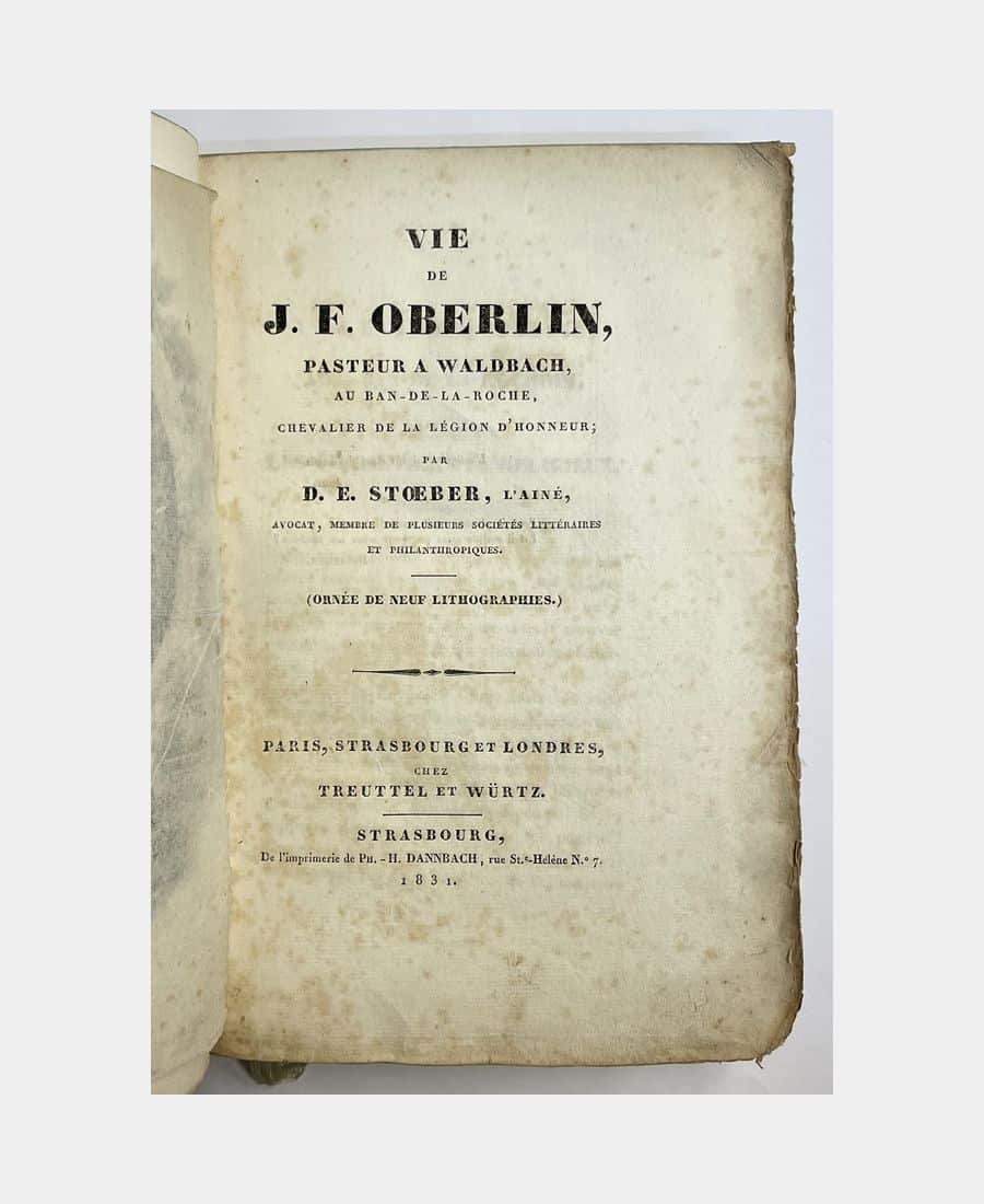 Life of J. F. Oberlin, pastor at Waldbach, Ban-de-la-Roche, Chevalier de la Légion d’honneur. Stoeber (Daniel Ehrenfried). 1831.