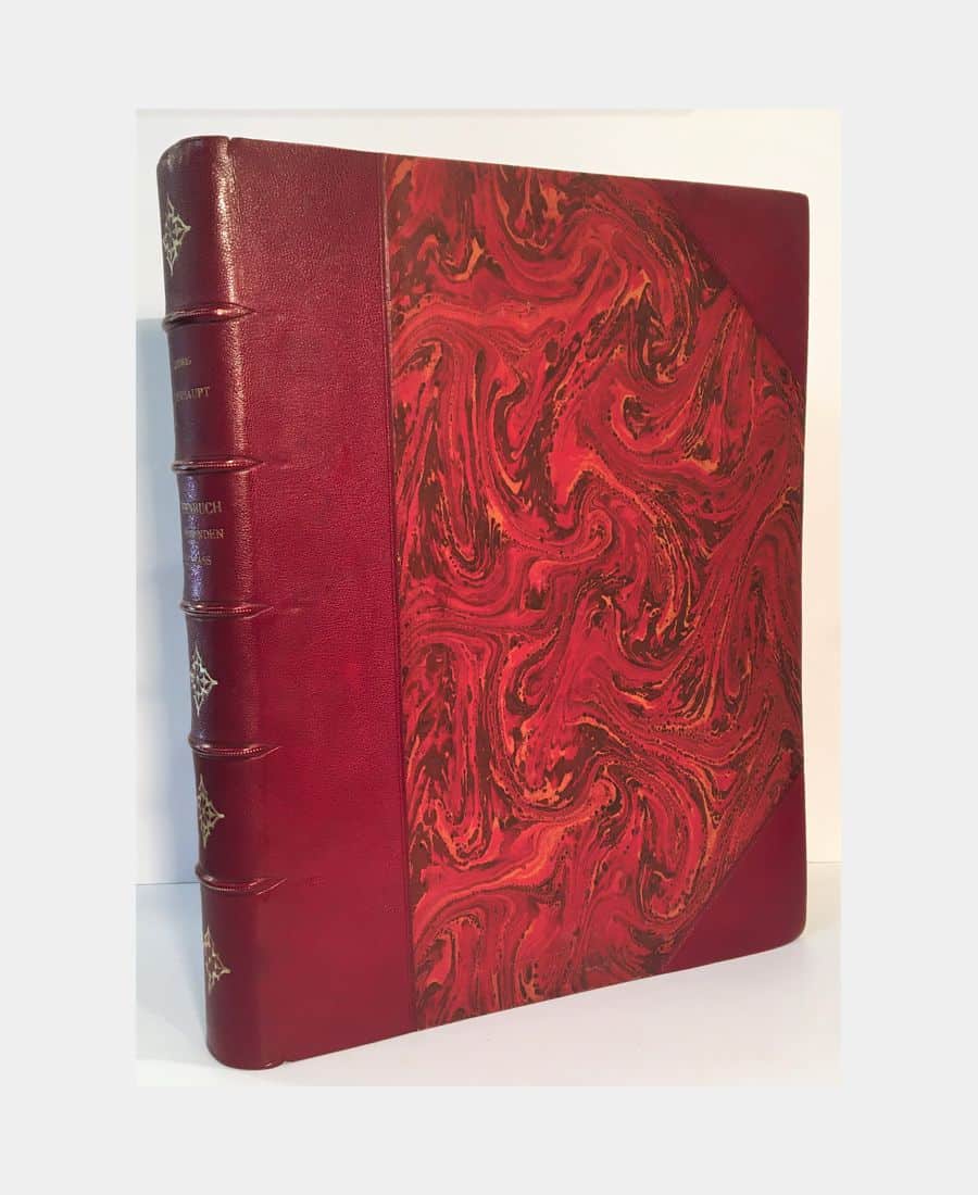 Strasbourg, J. Noiriel, 1900; in-folio, 239 and VII pages. Burgundy half-chagrin with corners, 5-ribbed spine, gilt author, title and irons. This German edition is complete with 110 plates for Bas-Rhin and 77 plates for Haut-Rhin. A few inversions to be noted in both parts. A fine copy.