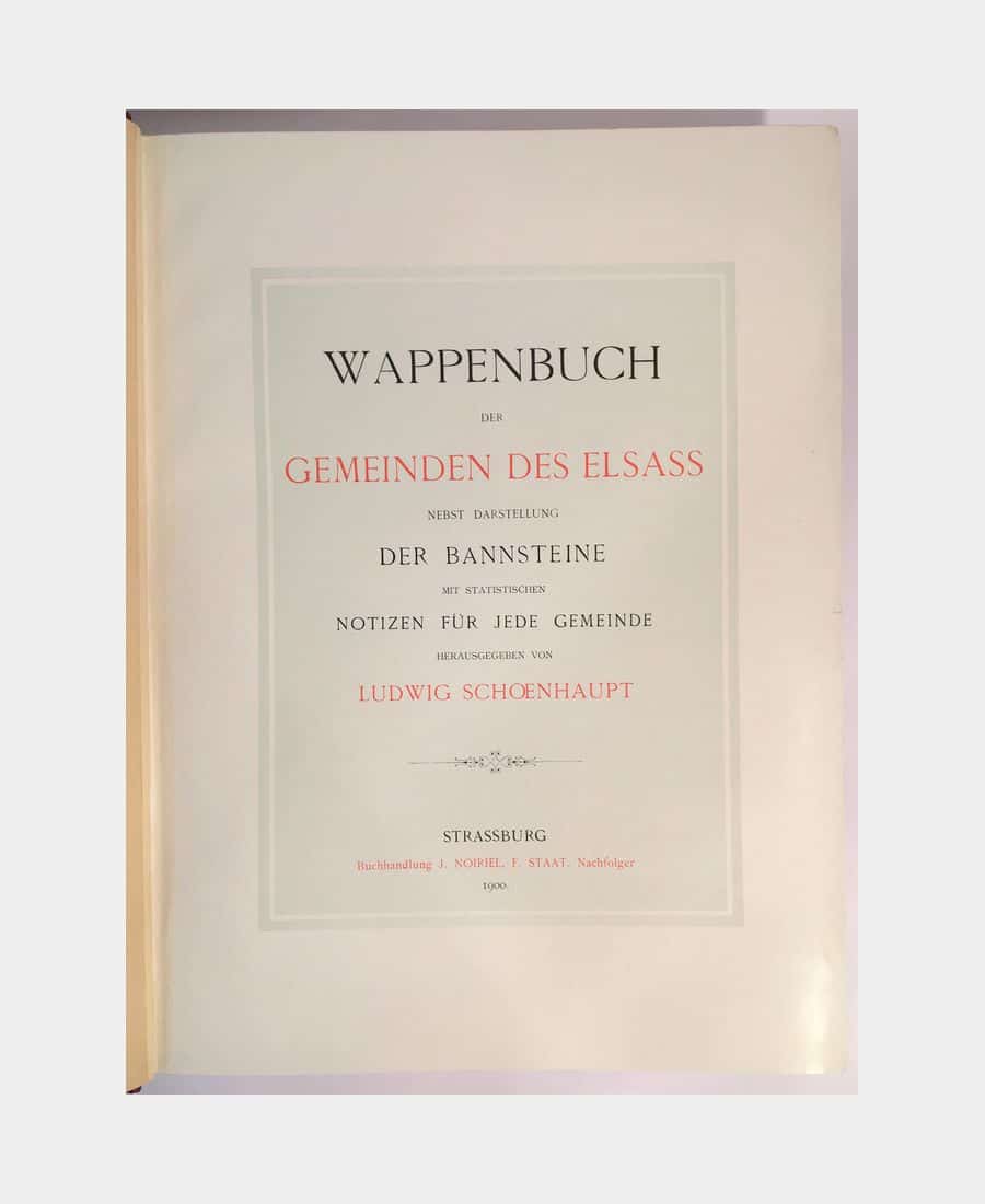 Wappenbuch der Gemeinden des Elsass nebst Darstellung der Bannsteine mit statistischen Notizen für jede Gemeinde. Schoenhaupt (Ludwig). 1900.