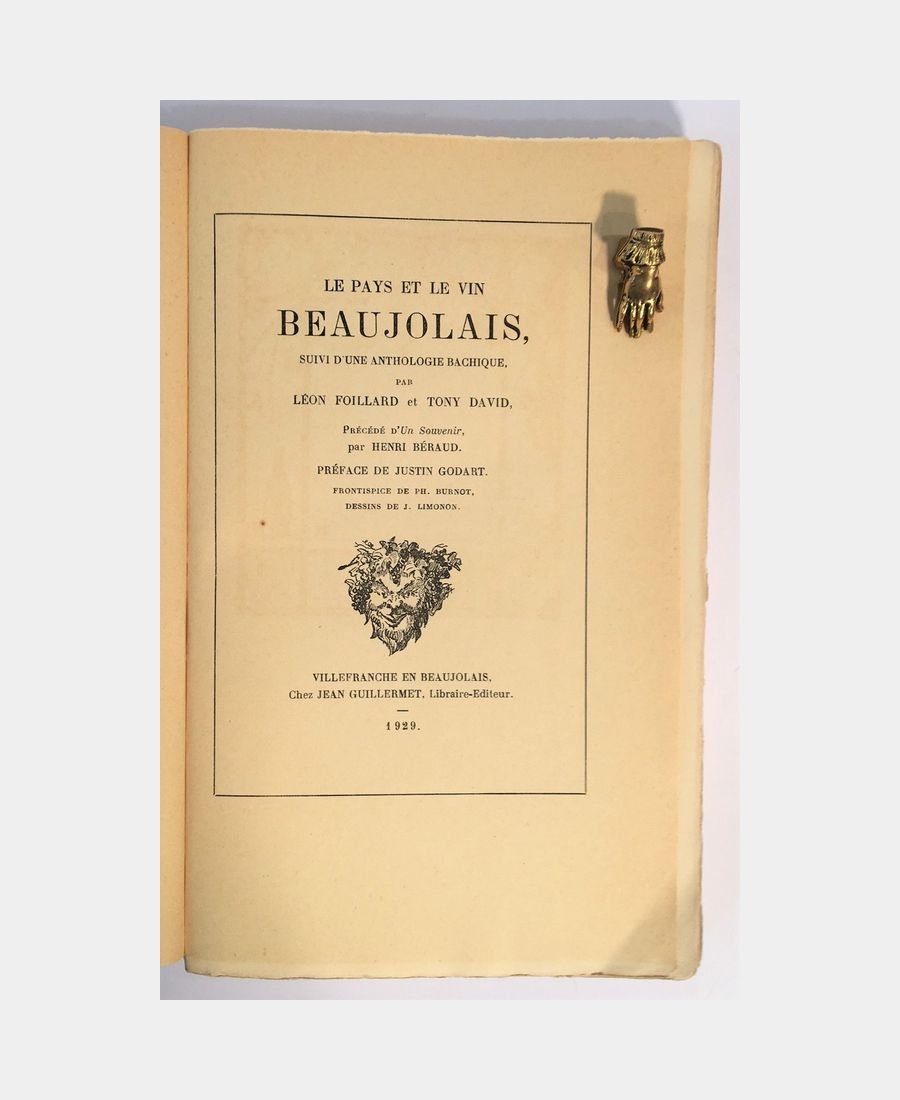 Le pays et le vin Beaujolais followed by a bachique anthology. Foillard (Léon), David (Tony). 1929.