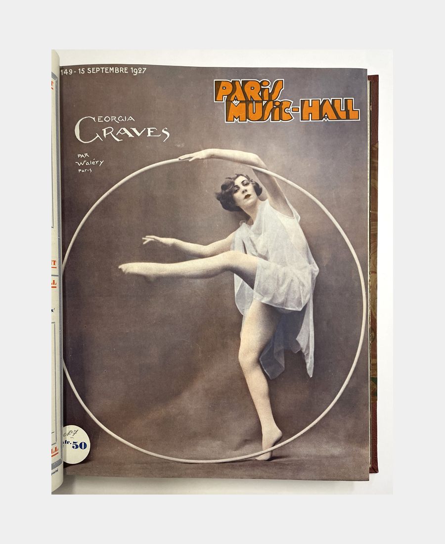 Paris, Fleuriot et Cie, 1927 – 1928. An in folio volume bound in half cloth with corners, featuring 31 issues of the bi-monthly magazine Paris Music-Hall, from no. 143 June 15, 1927 to no. 172 September 1, 1928. Numerous photographic illustrations.