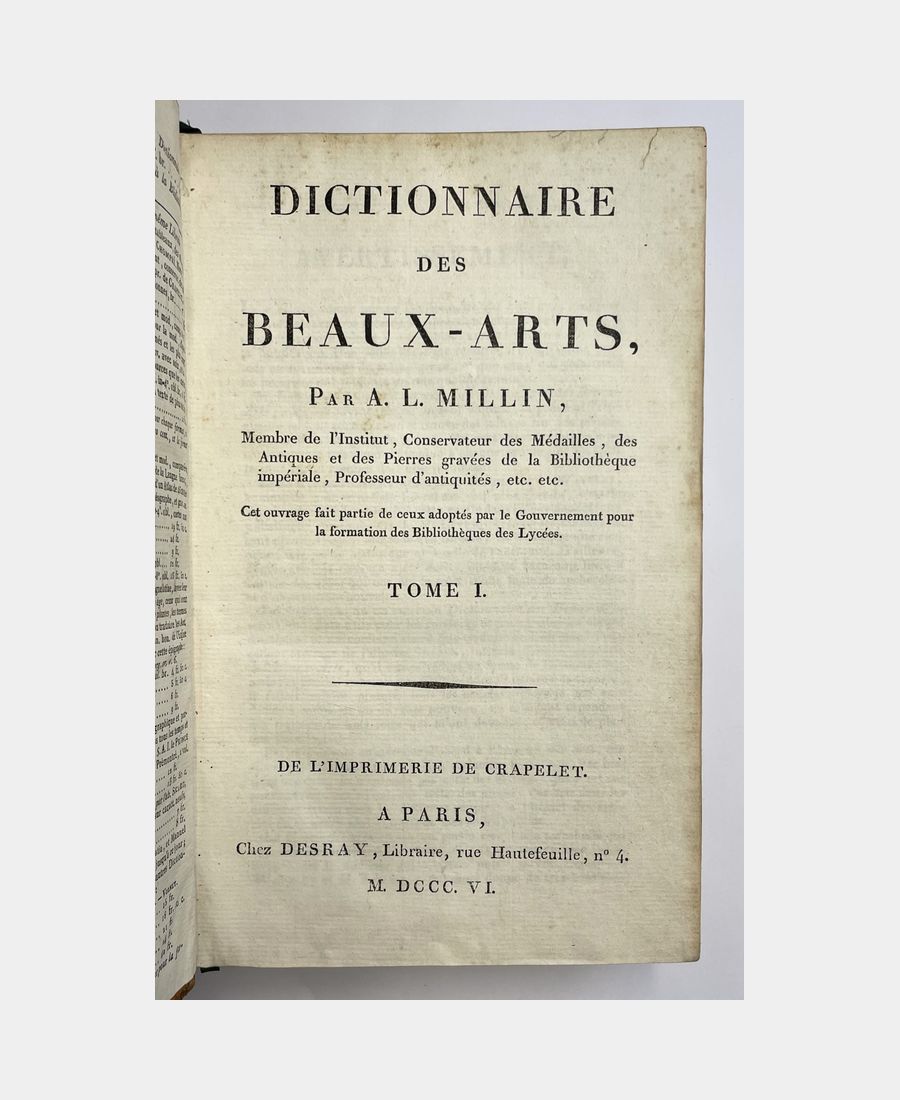 Dictionnaire des Beaux-Arts. MILLIN (Aubin-Louis). 1806.