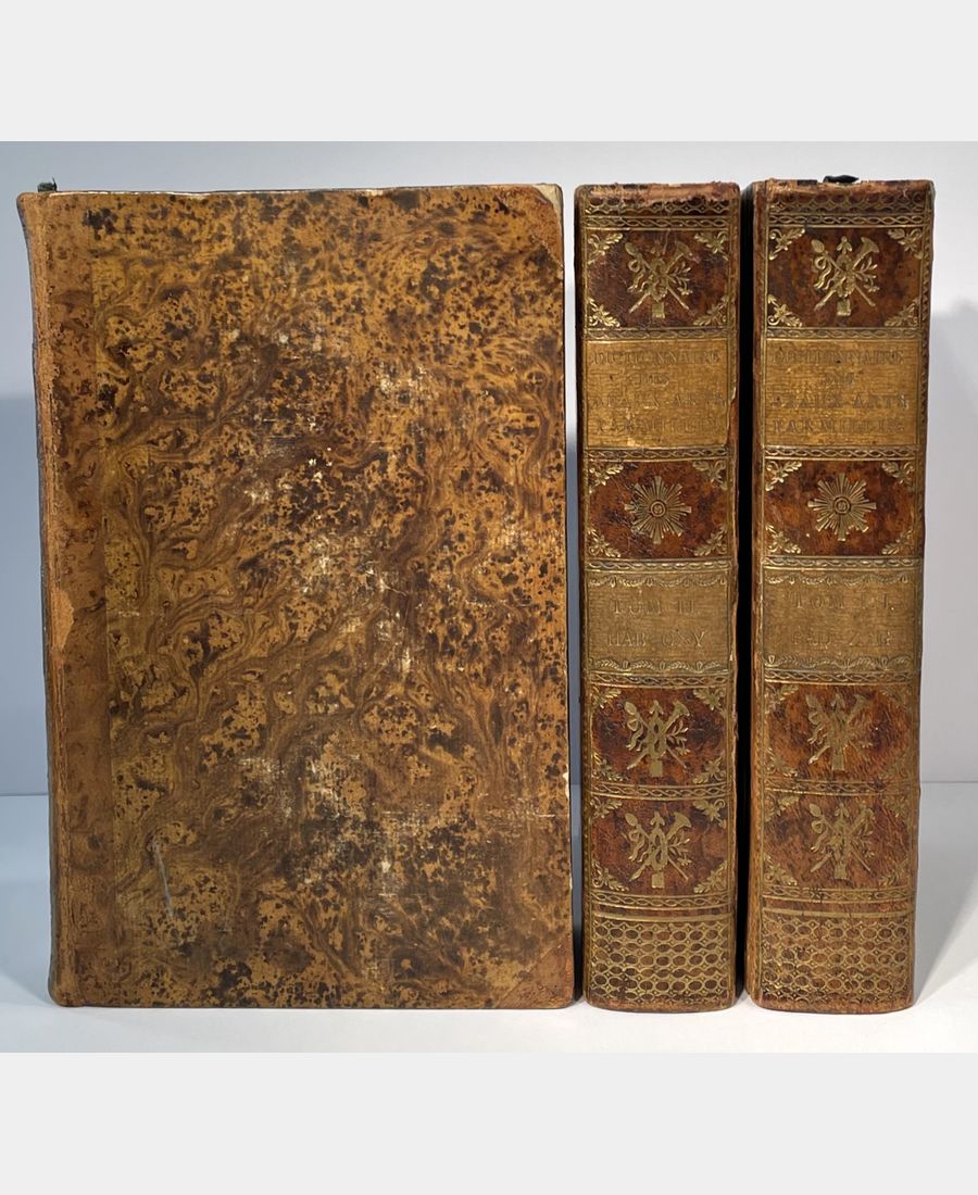 Paris, Imprimerie de Crapelet, 1806 ; 3 volumes in-8 de VII + 819 + (2) ff. + 744 + (2) ff. + 826 pp. Demi-veau à coins de l’époque, dos ornés à faux nerfs, pièces de titre et de tomaison, plats en cartonnage raciné de l’époque, à l’imitation du cuir. Coins et coiffes émoussés, mors légèrement fendus, quelques frottements. Edition originale, bien complète en trois volumes. Aubin Louis Millin (1759-1818), archéologue, numismate, naturaliste, fut conservateur et professeur à la Bibliothèque nationale. Exemplaire issu de la vente Braunagel de 1959.