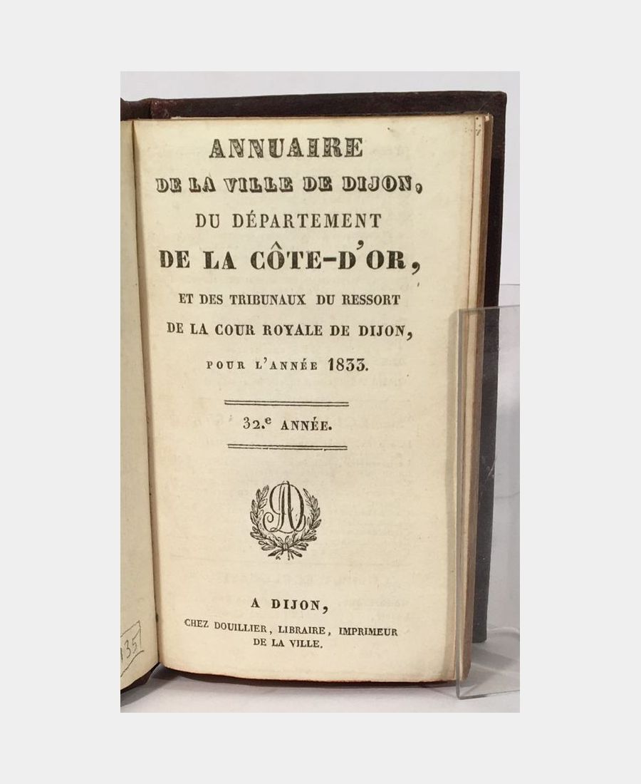 Annuaire de la ville de Dijon, du département de la Côte-d’or, et des tribunaux du ressort de la cour royale de Dijon, pour l’année 1833.