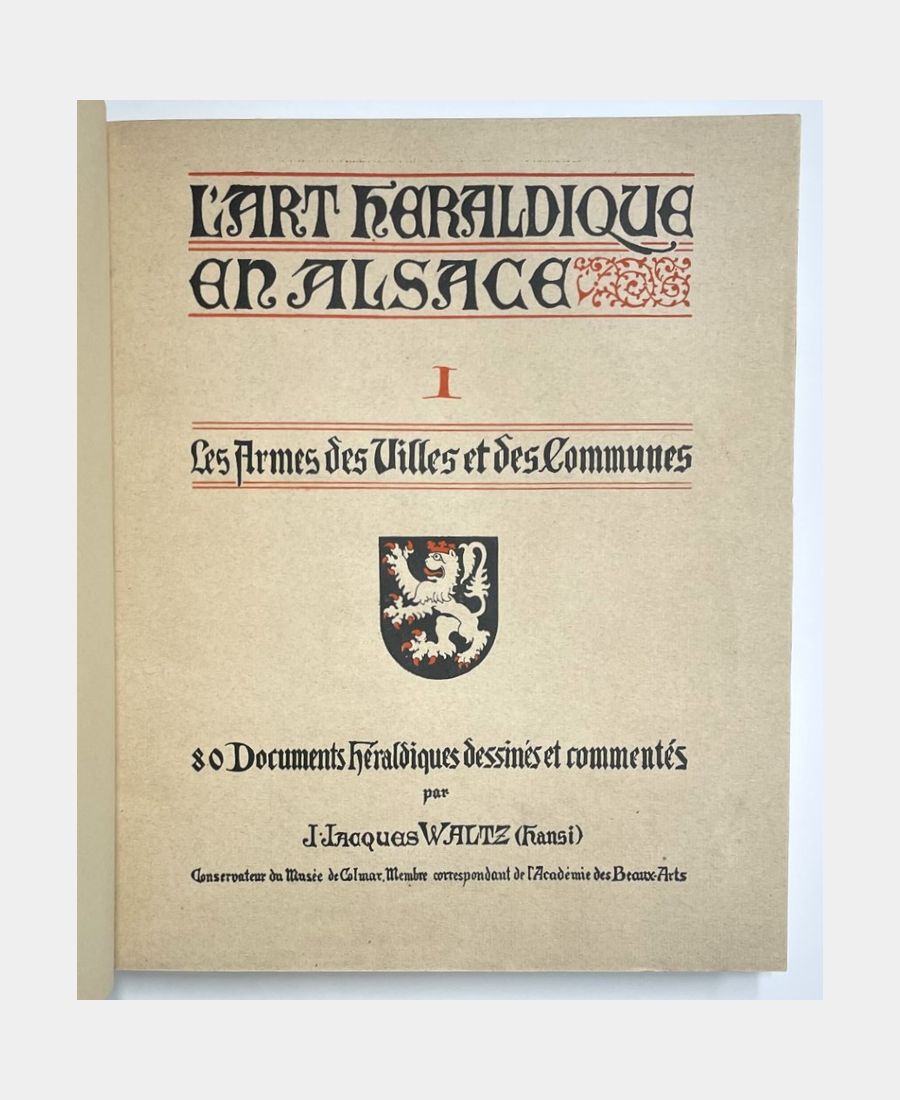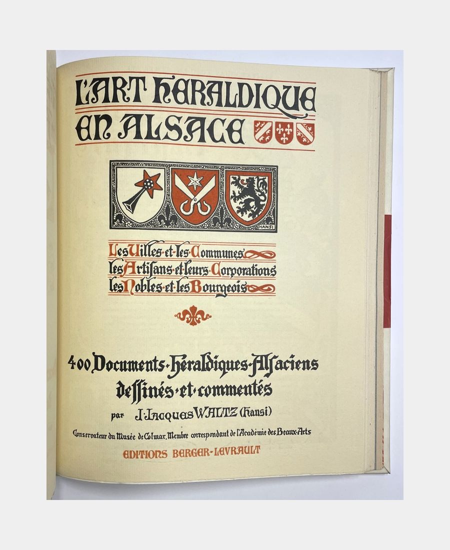 Heraldic art in Alsace. I: City and town weapons. II: Weapons of the Tribes and Corporations and Emblems of the Craftsmen. III: Arms of the Nobles and Bourgeois. HANSI (Jean-Jacques Waltz). 1938-1939-1949.