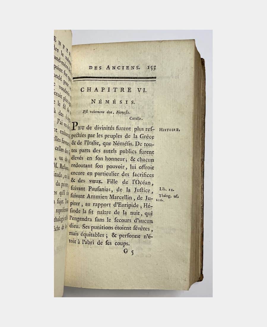 Paris, Rue et Hotêl Serpente (Imprimerie de Gueffier), 1784; in-12 of (4), XII, 268, 269 – 567 pp., (5). Full shagreened calf, smooth spine decorated with gilt fleurons and geometric designs, title-pieces. Joints on upper cover very slightly split, corners corroded. First edition of this work by Antoine-François Delandine, who was a lawyer, court clerk and director of the Lyon municipal library. Table of artists who depicted the infernal gods, table of cited authors and bibliography in fine.
