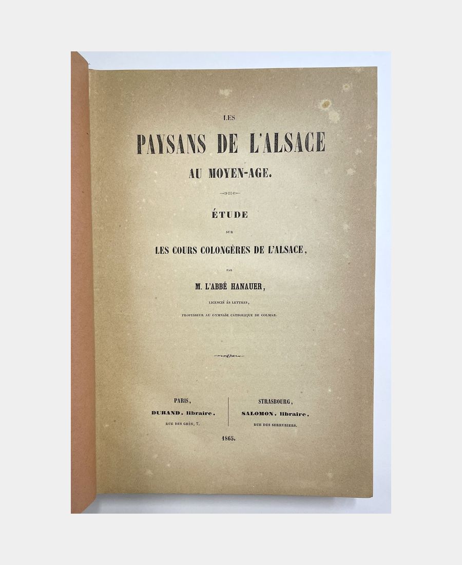 The peasants of Alsace in the Middle Ages. A study of the colonial courts of Alsace. Hanauer (Auguste). 1865.