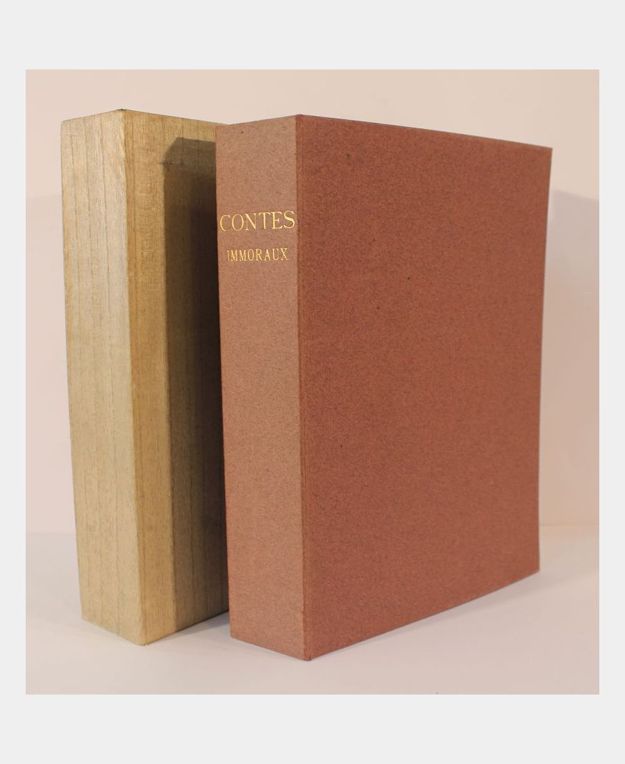 Paris, Editions de l’Odéon,1951. In-8, 204 pages, 2 f.n.ch. in sheets, in printed and illustrated filled cover, publisher’s folder and slipcase. Illustrated by Jean Gradassi, stencilled in color. Edition numbered 188 of 250, on Rives vellum, otherwise a fine copy. A good copy, despite slight yellowing of the front cover.