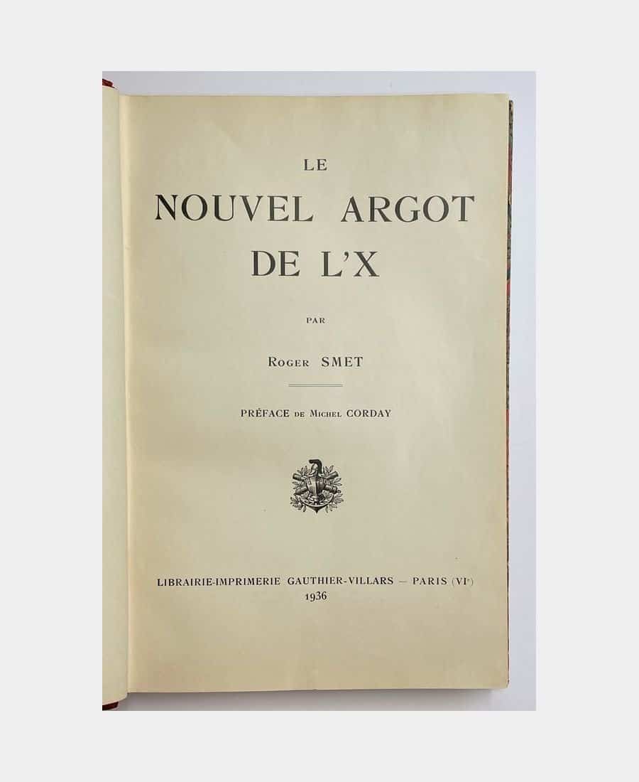 Le Nouvel argot de l’X. Smet (Roger). 1936.