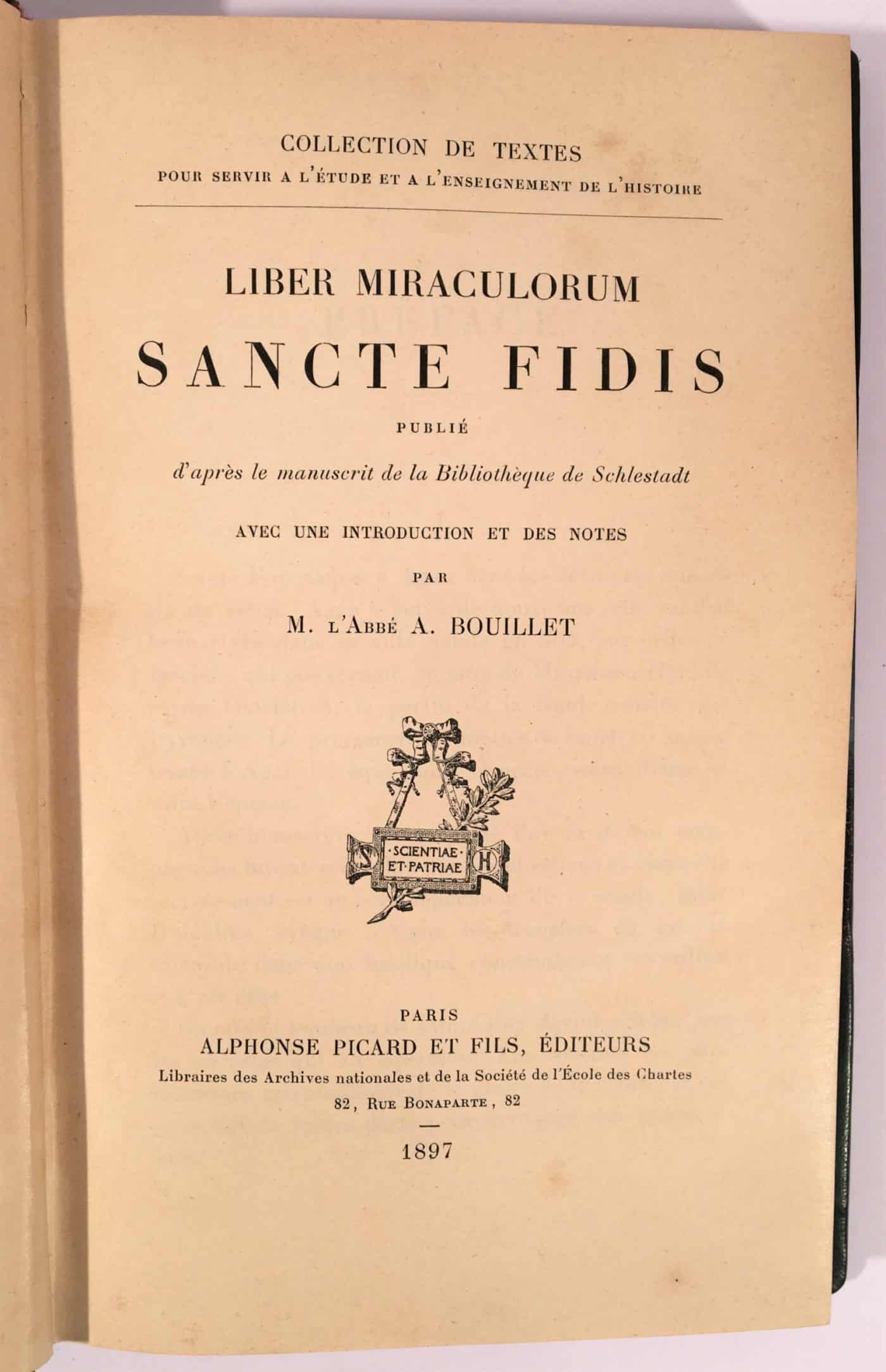 Liber Miraculorum Sancte Fidis published from the manuscript in the Schlestadt Library. Bouillet (A., Abbé). 1897.