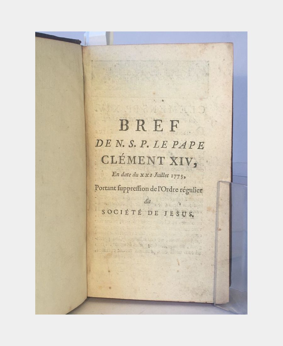 Recueil De 10 Pièces Concernant Les Jésuites Dont Bref De N. S. P. Le Pape Clement Xiv, En Date Du Xxi Juillet 1773, Portant Suppression De L’Ordre Régulier Dit Societe De Jesus.