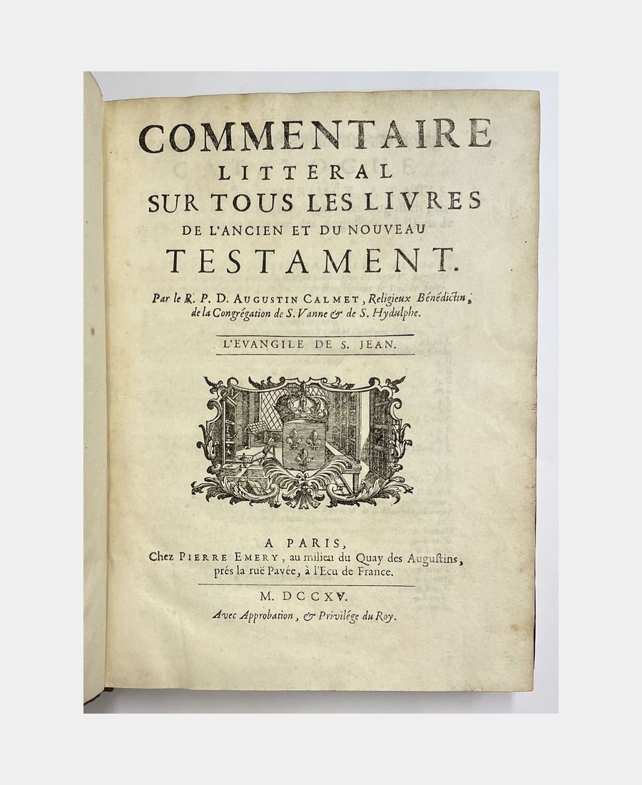 The Gospel of S. John. A literal commentary on all the books of the Old and New Testaments. Calmet (Augustin). 1715.