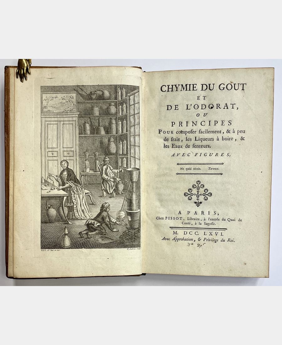 Chymie du Gout et de l’Odorat, ou Principes Pour composer facilement, & à peu de frais, les Liqueurs à boire, & les Eaux de senteurs. Avec Figures.