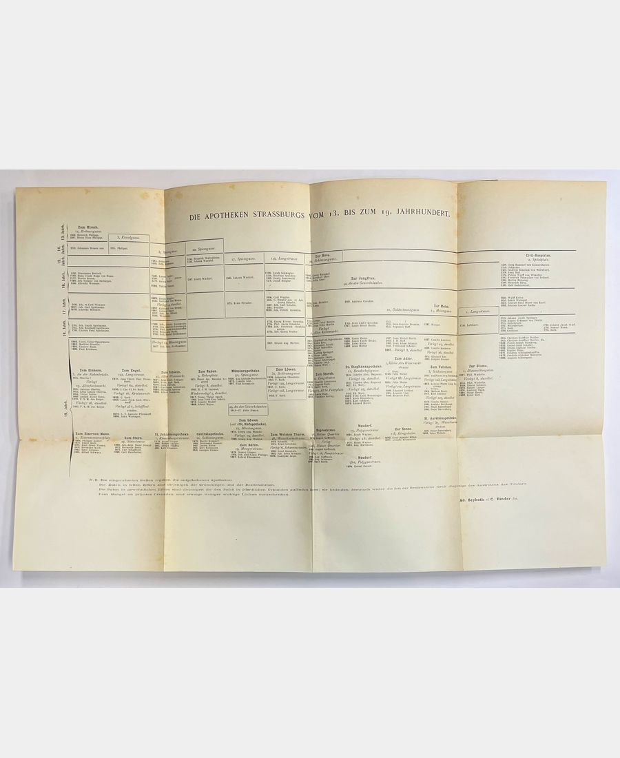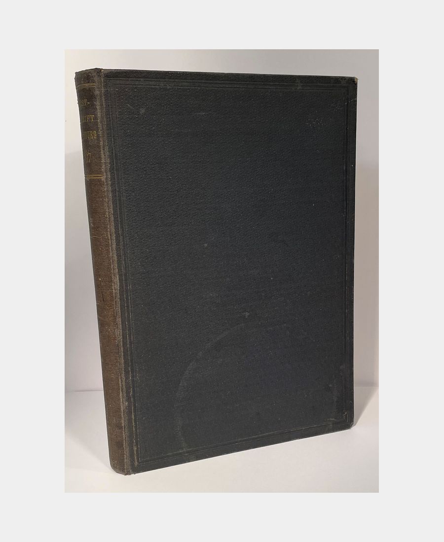 Strasbourg, Elsässiche Druckerei und Verlagsanstalt, 1897; in-8 of VIII, 182 and 153 pages. Publisher’s full blue cloth, smooth spine with gilt title, decorated with gilt fillets. Spine slightly oiled, upper jaw of lower cover split over 3 cm, brown spots. Complete with 12 phototyped plates and fold-out table listing Strasbourg pharmacists from the 13th to 19th centuries. Collection of articles on biodiversity in Alsace-Lorraine, pharmaceutical studies in Strasbourg, Strasbourg pharmacists, recent contributions from the University’s Institut de pharmacie…