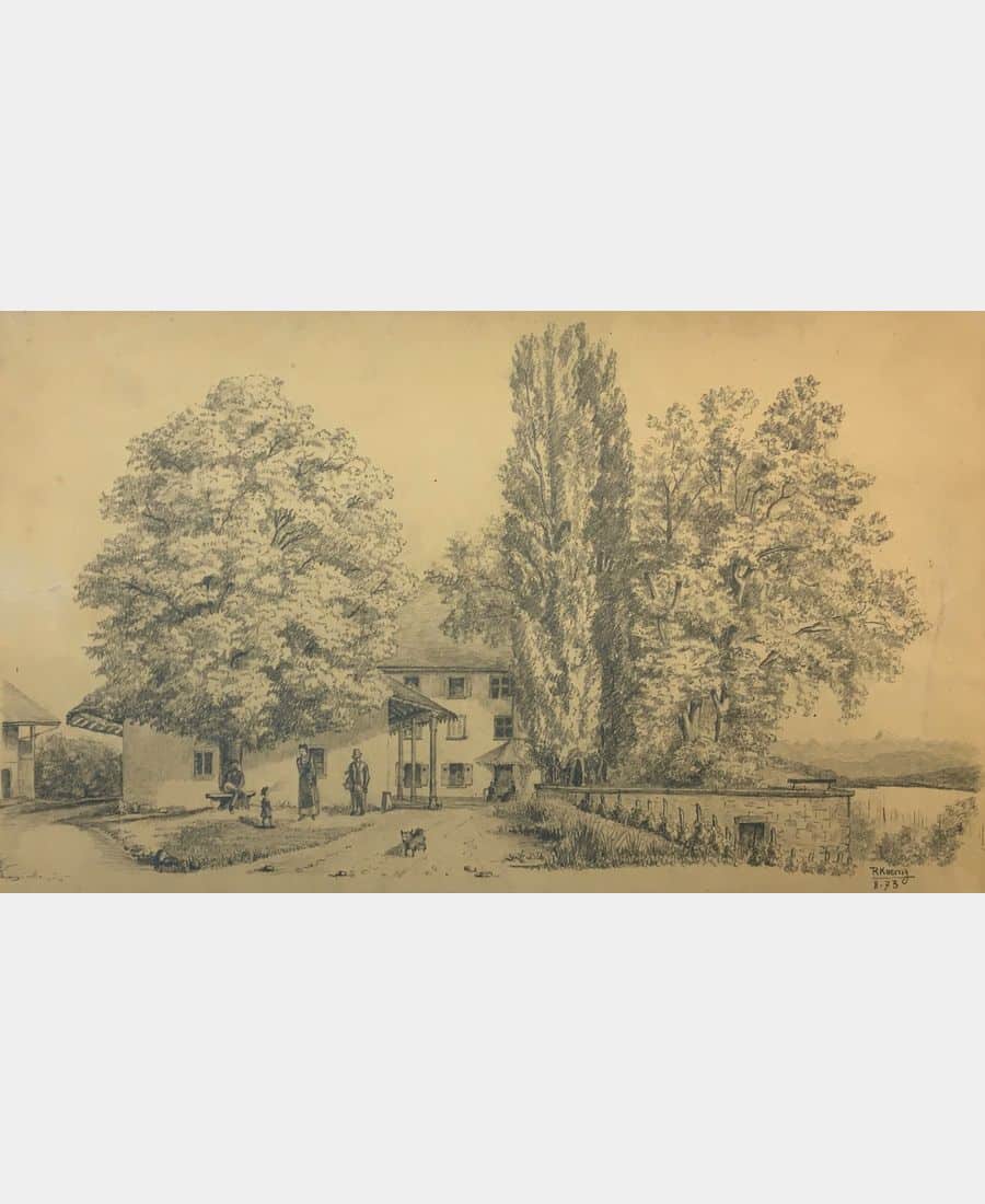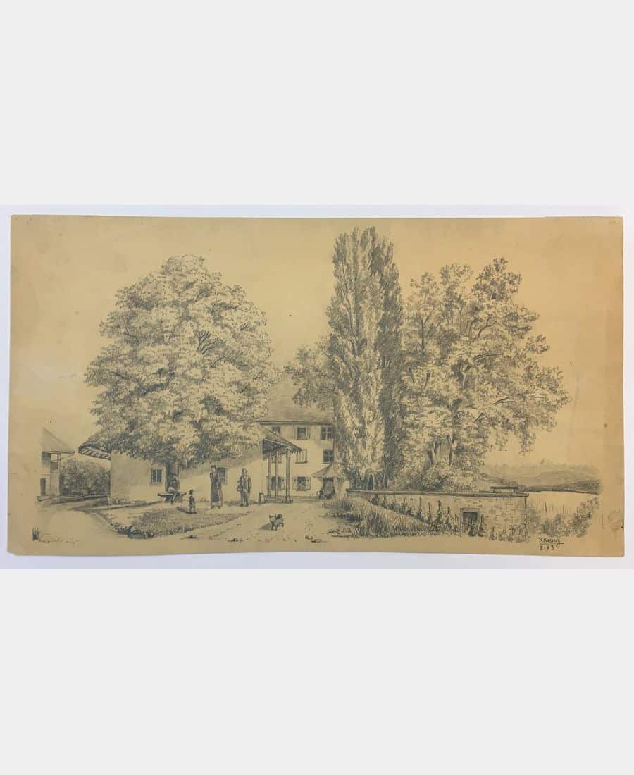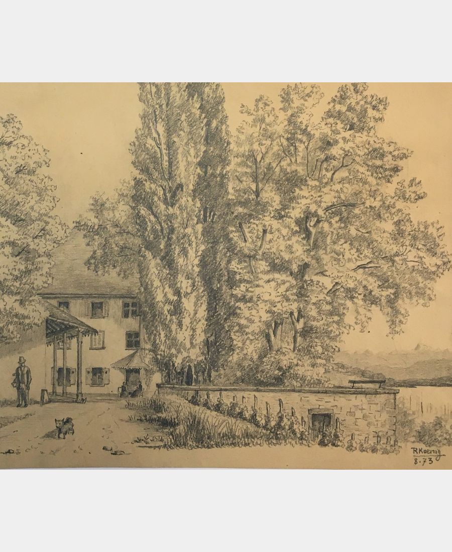 Brestenberg (near Guebwiller). Pencil drawing. Signed lower right R. Koenig, dated August 1873. Sheet size: 472 x 261 mm. Small marginal stain at right, two small marginal tears, one 5.5cm lateral.