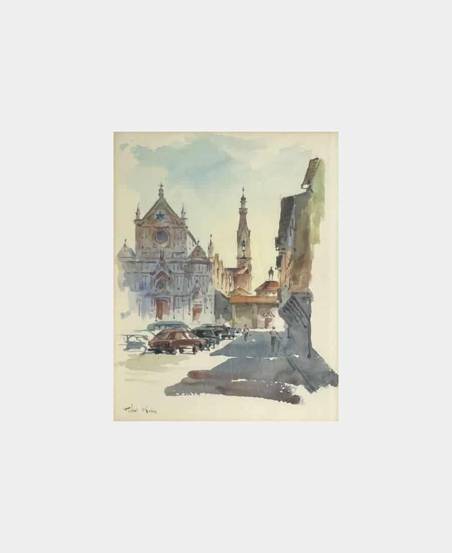 Florence – Chiesa di Santa Croce. Robert Kuven (Strasbourg, 1901 – 1983, Strasbourg). Framed watercolor. Signed lower left. Subject size (view): 290 x 250 mm. Frame size: 455 x 374 mm.