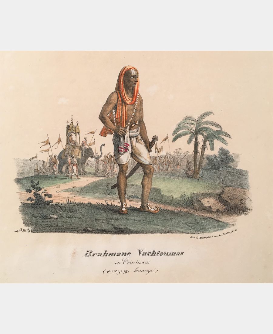 Brahman Vachtoumas or courtier. Lithograph by Jean-Henri Marlet. 1835.