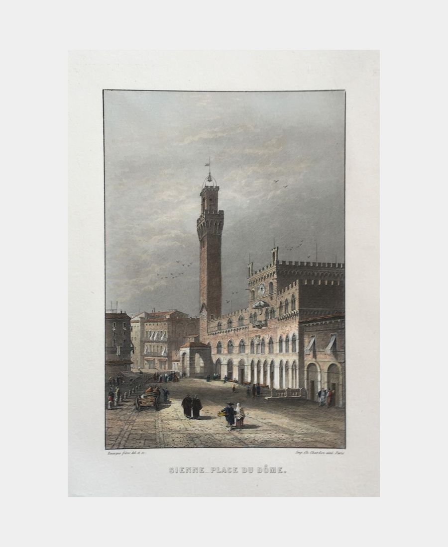 Siena – Duomo Square. Rouargue (Brothers). Etching. Nineteenth century.