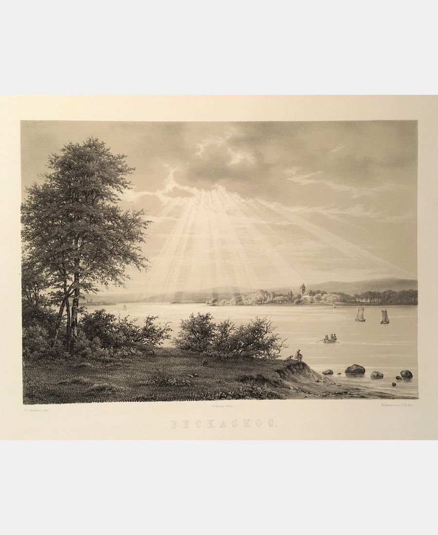 Beckaskog. Lithograph by Baerentzen after Kierschou. 1856. Sheet size: 262 x 331 mm. Subject size : 200 x 279 mm. A very fine print.
