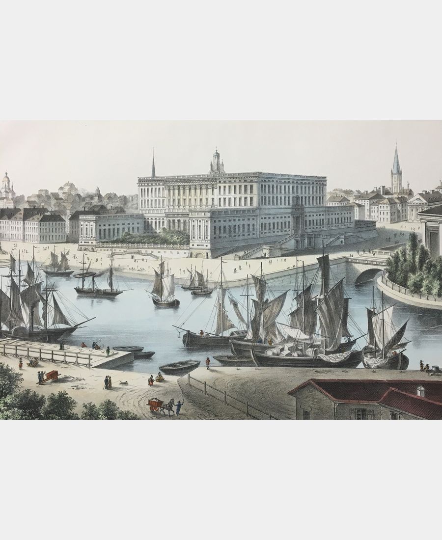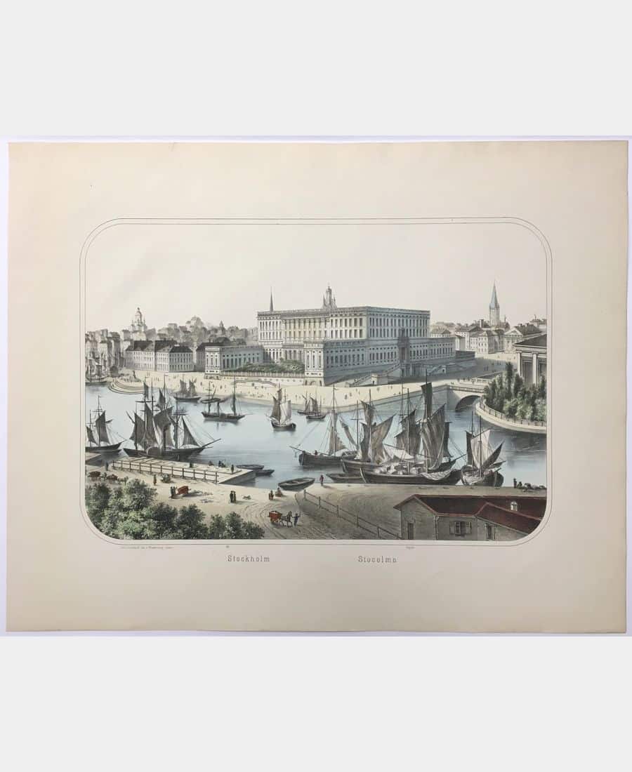 Stockholm. Lithograph printed by Charles Burckardt after 1880 in Wissembourg. Hand-colored. Sheet size: 480 x 593 mm. Subject size: 319 x 465 mm. A very fine print.