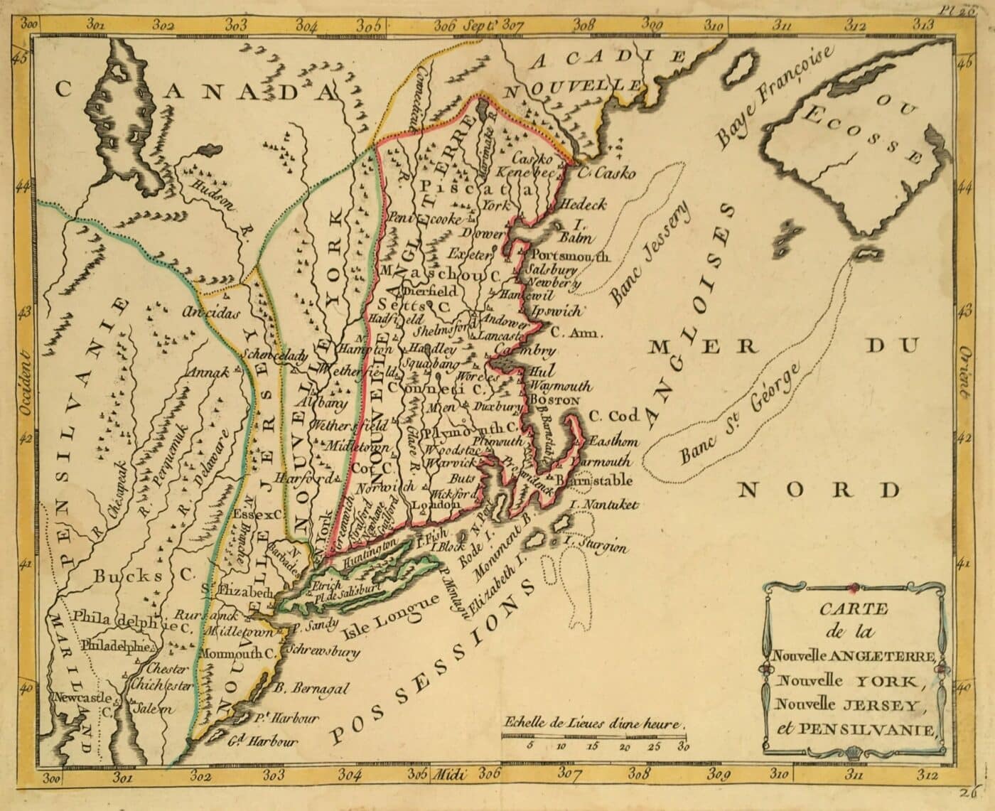 Map of New England, New York, New Jersey and Pensilvania. Joseph Delaporte. 1781.