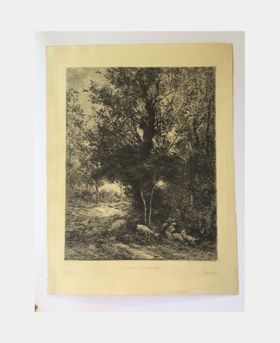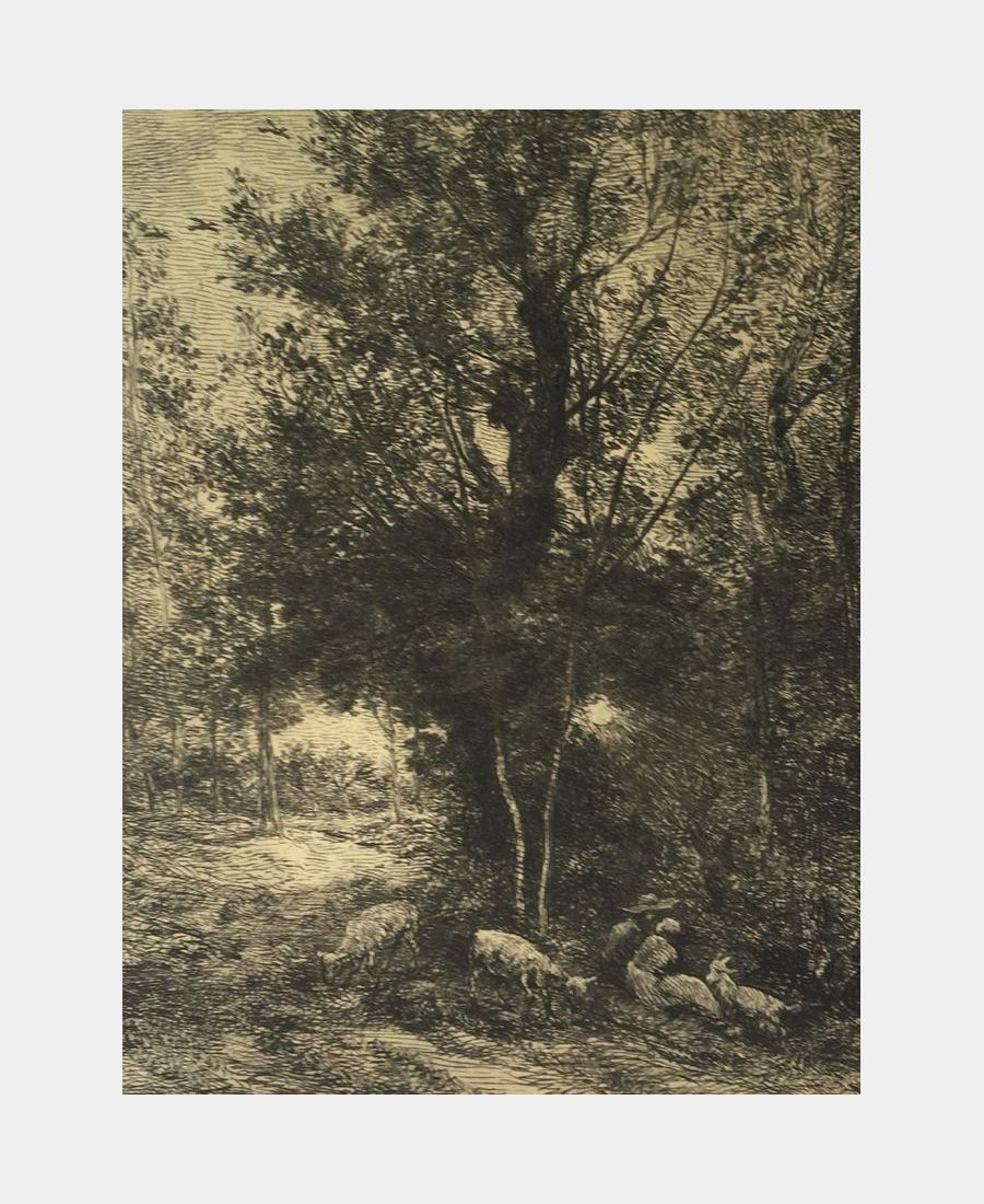 The shepherd and the shepherdess. Original etching. laid paper. 1874. Printed by L. Fort in Paris. Sheet size : 321 x 245 mm. Subject size : 283 x 219 mm. A fine proof.