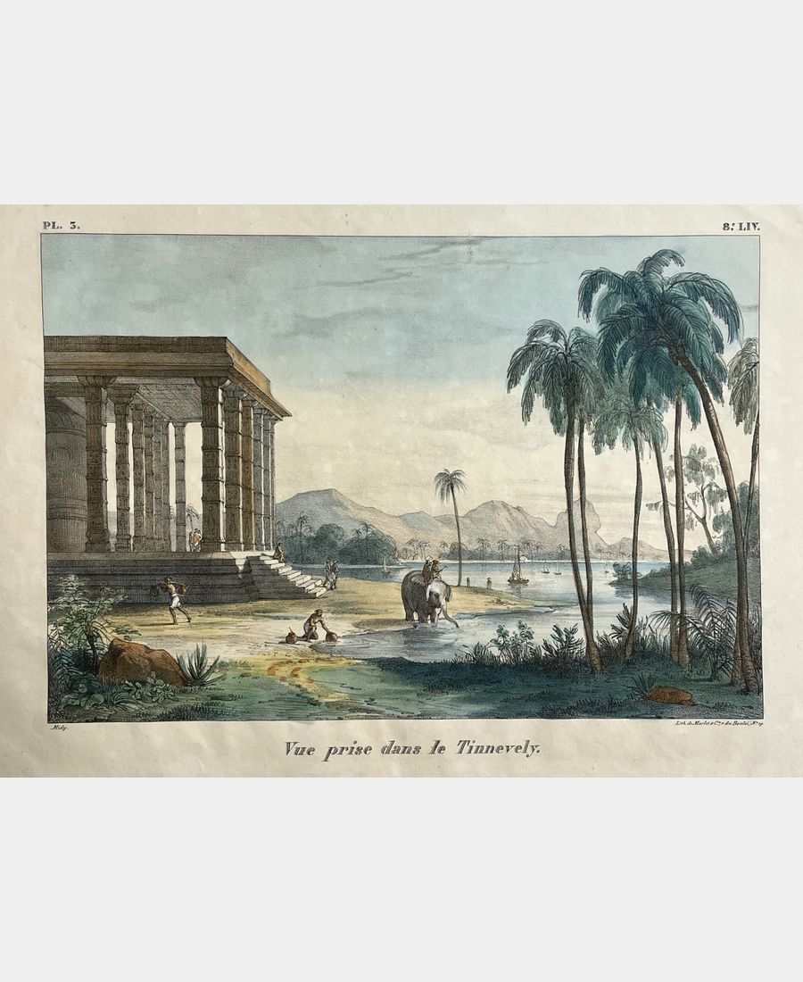 Vue prise dans le Tinnevely. Lithographie de Marlet d’après Midy. Circa 1830.