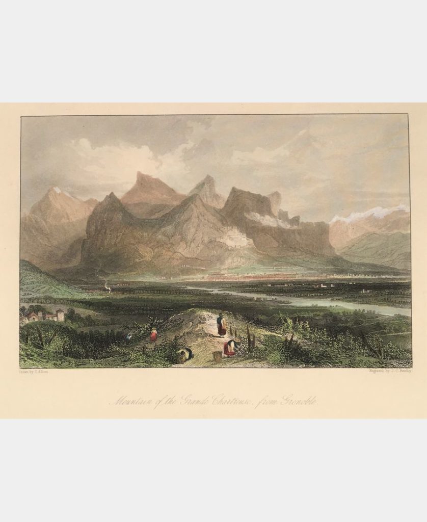 Ducatus Sabaudiae Principatus Pedemontii Ducatus Montisferratensis. Christoph Weigel. Gravure sur cuivre. XVIIIe siècle. Coloris main. Dimension du feuillet : 355 x 443 mm. Dimension au coup de planche : 324 x 370 mm. Pliure centrale, deux tâches symétriques d’1 cm, légères salissures marginales.