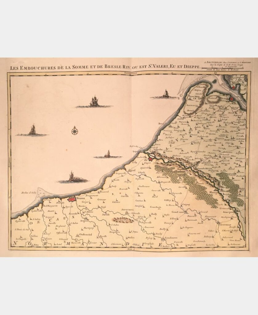 Carte du Gouvernement de Normandie avec celui du Maine et Perche. Rigobert Bonne. 18ème siècle. Gravure sur cuivre. Infimes rousseurs. Dimension du feuillet : 365 x 506 mm. Dimension au coup de planche : 309 x 421 mm.