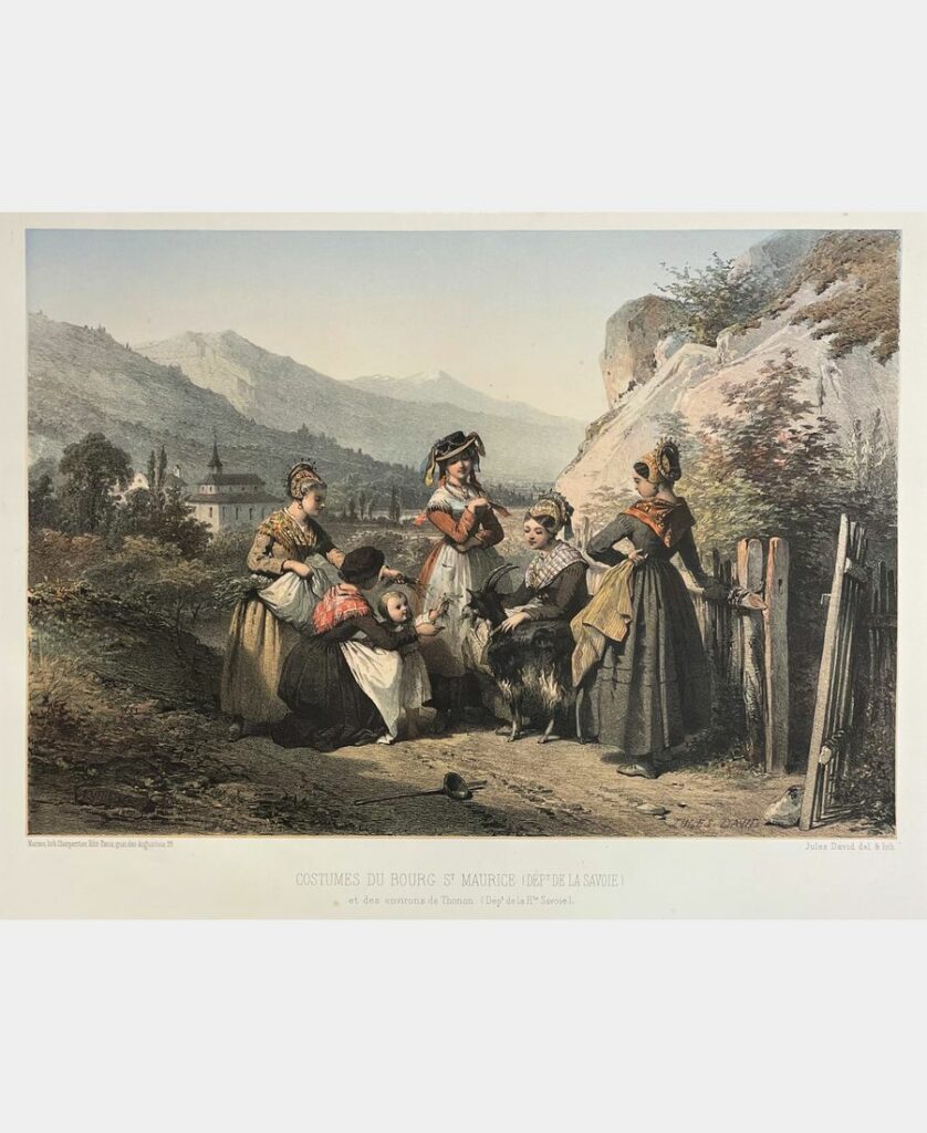 Glacier of Bossons (Valley of Chamouni) Glacier des Bossons, vallée de Chamonix D’après Bartlett, gravé par Lacey 1835 Eau-forte, coloris main. Dimension du feuillet : 210 x 275 mm Dimension au coup de planche : 205 x 273 mm