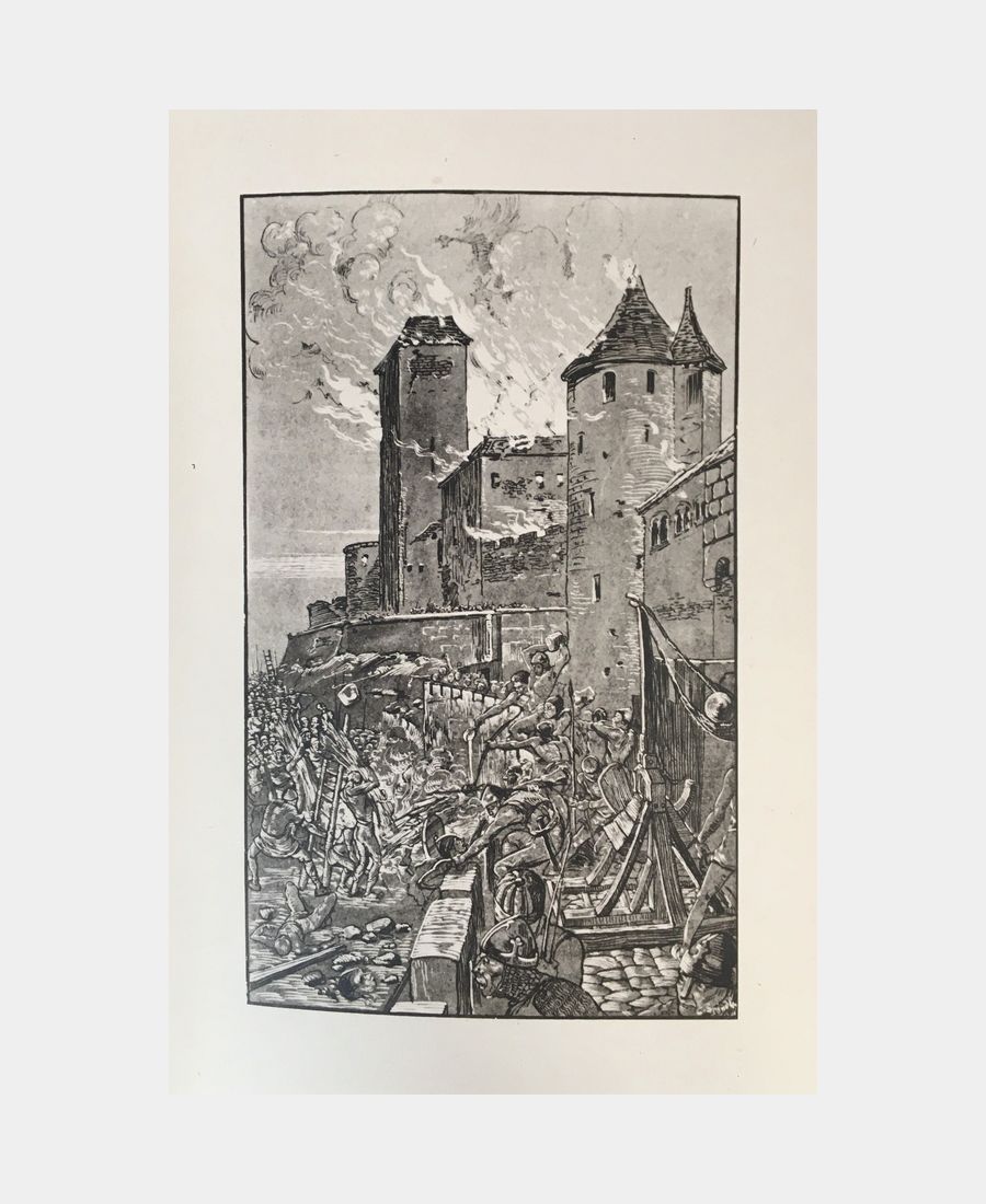 Mülhausen, Ch. Bahy (S. Pétry), 1896. Grand in-8 de 285 pages, 23 planches hors-texte. Demi-chagrin mauve, dos à nerfs orné d’une palmette dorée, pièce de titre. Bien complet des 23 planches hors-texte dont les 12 compositions de Charles Spindler. Très bel exemplaire.