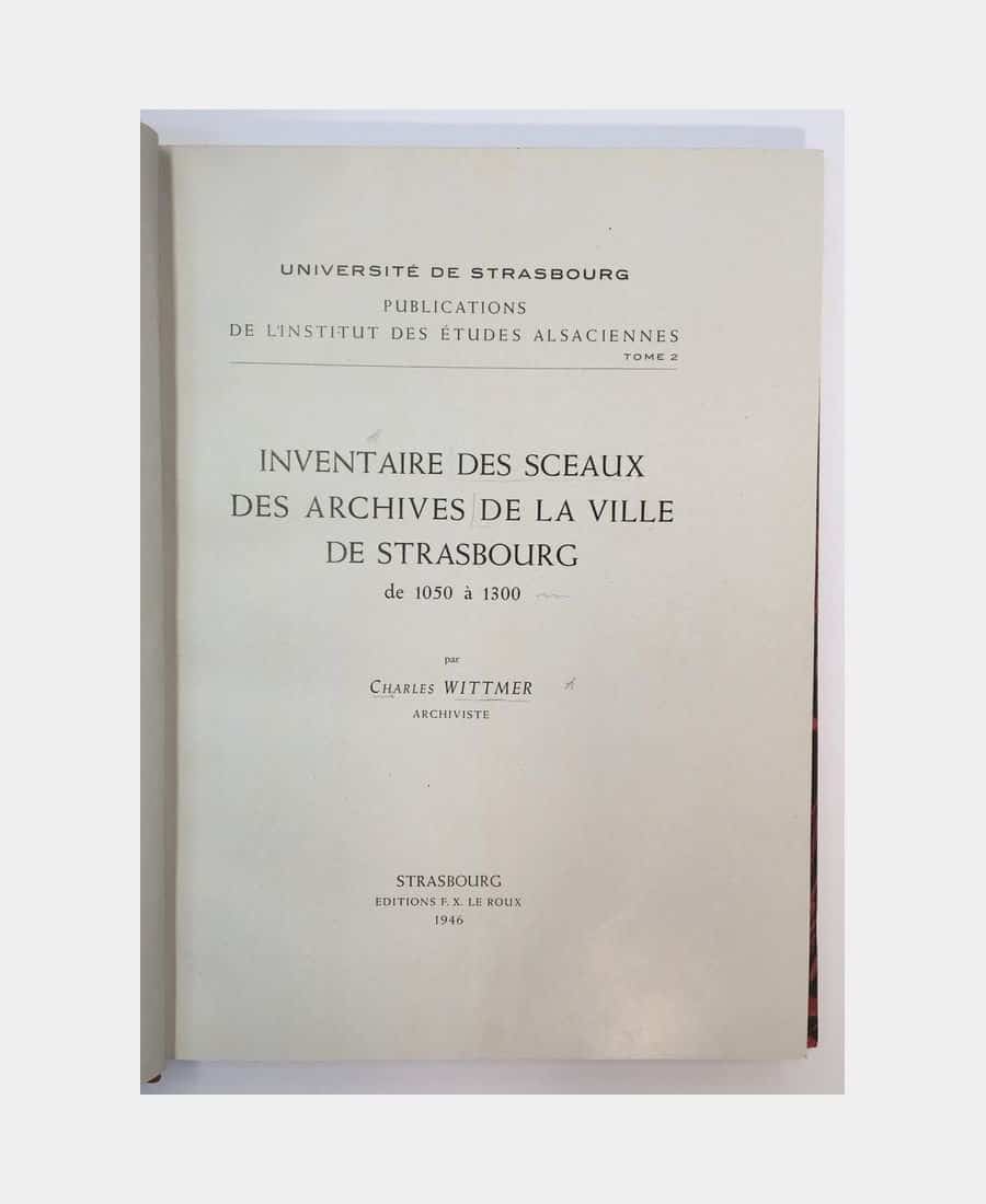 Inventaire des sceaux des Archives de la ville de Strasbourg de 1050 à 1300. Wittmer (Charles). 1946