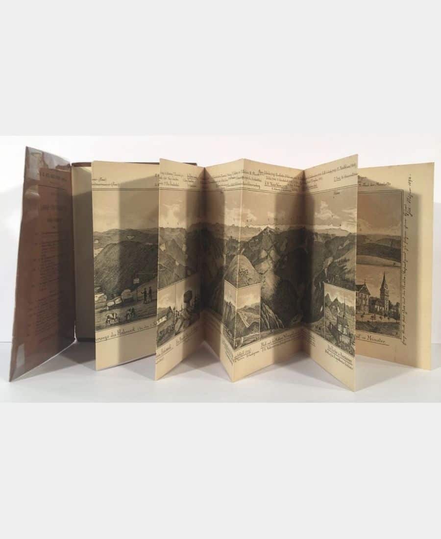 Strassburg, J. H. Ed. Heitz (Heitz & Mündel), 1892. In-8 (207 x 144 mm), leporello en 10 feuillets. Couverture en papier brun de l’éditeur. Très beau panorama lithographié présentant la vue du Hohneck sur les Vosges.