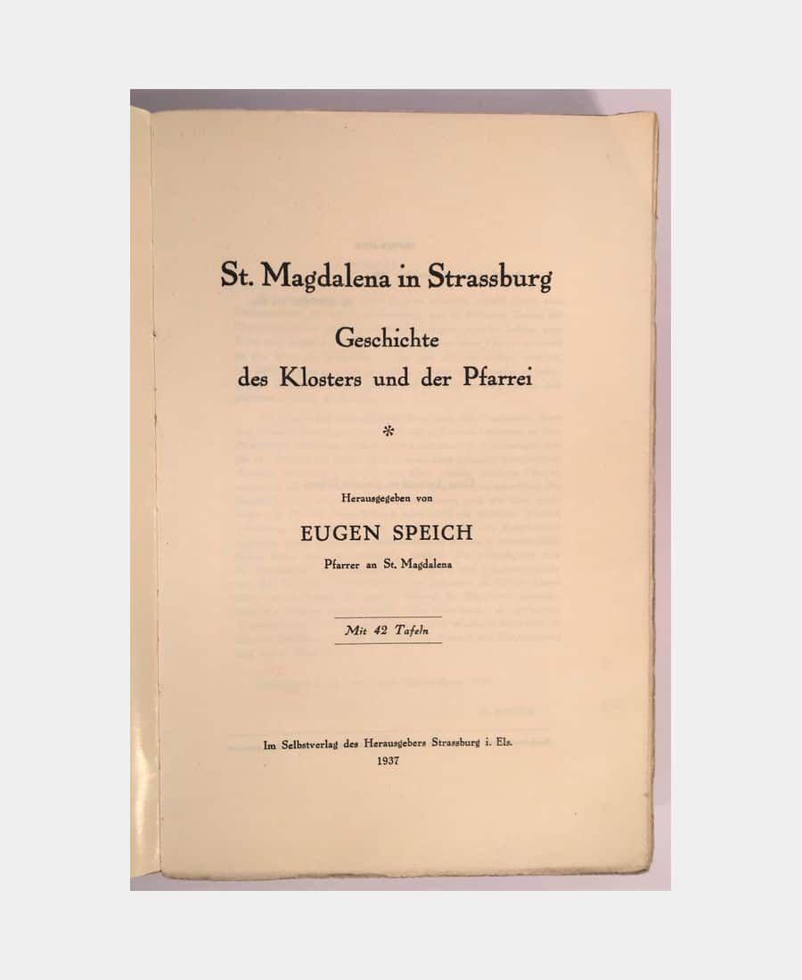 St. Magdalena in Strassburg : Geschichte des Klosters und der Pfarrei. Speich (Eugène). 1937.