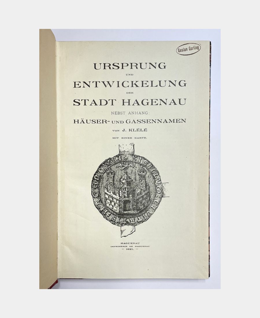 Ursprung und Entwickelung der Stadt Hagenau nebst Anhang : Häuser und Gassennamen. Klélé (Joseph). 1921.