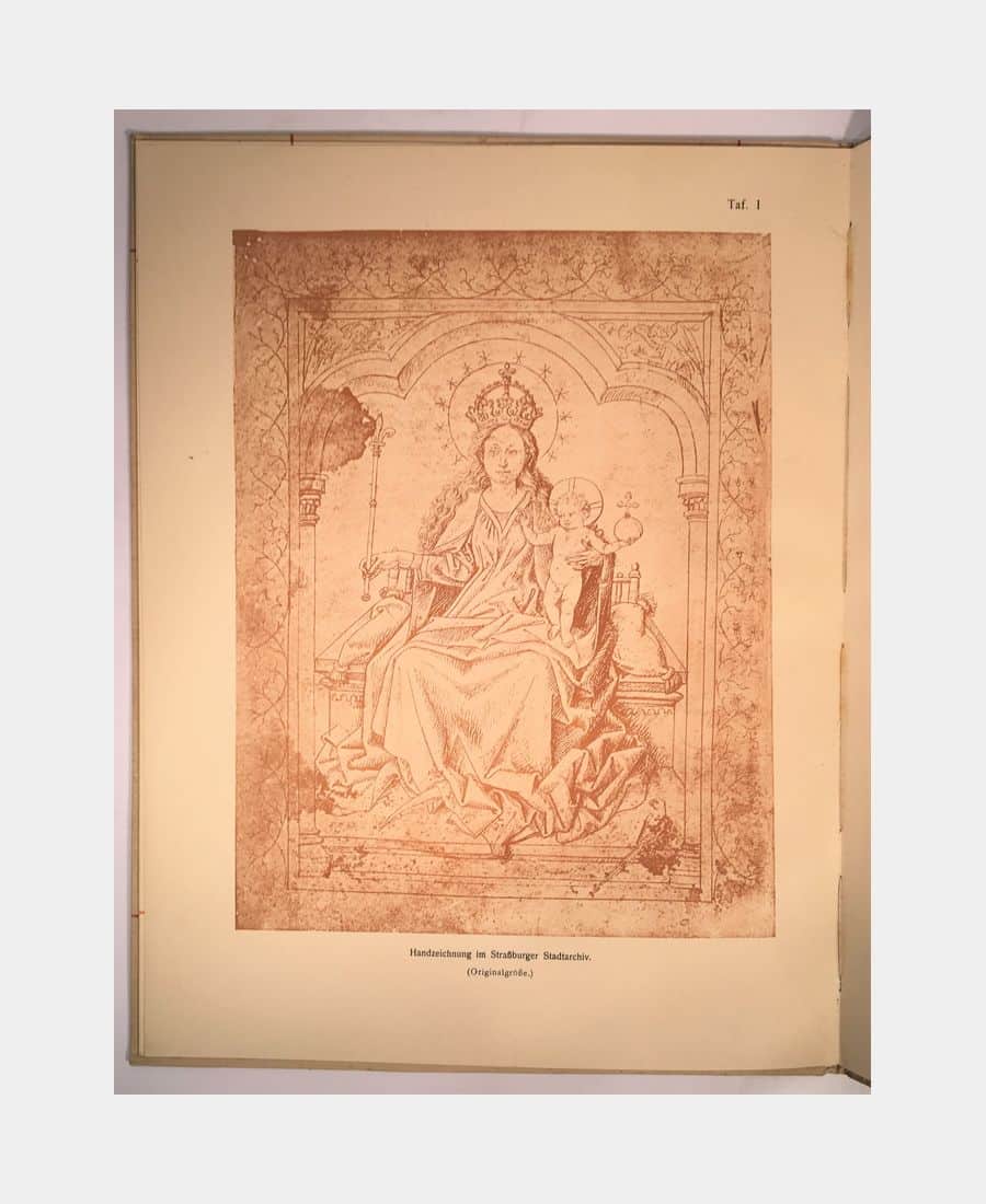 Strasbourg, J. H. Ed. Heitz (Heitz & Mündel), 1911 ; in folio de 12 p et 4 pl. hors-texte. Cartonnage imprimé sur les plats. Très légères rousseurs et marques sur le cartonnage. Tirage à 125 exemplaires. Bon exemplaire.
