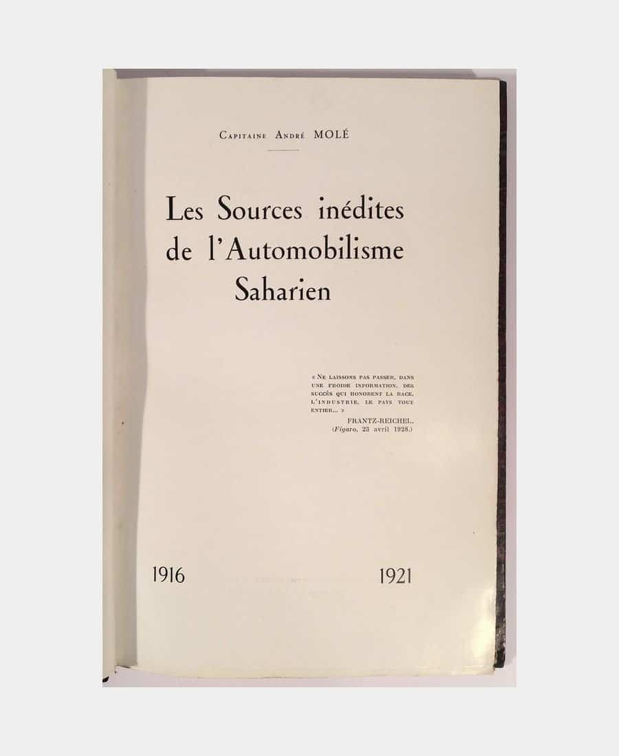 Les Sources inédites de l’Automobilisme Saharien. Molé (André, Capitaine). 1928.