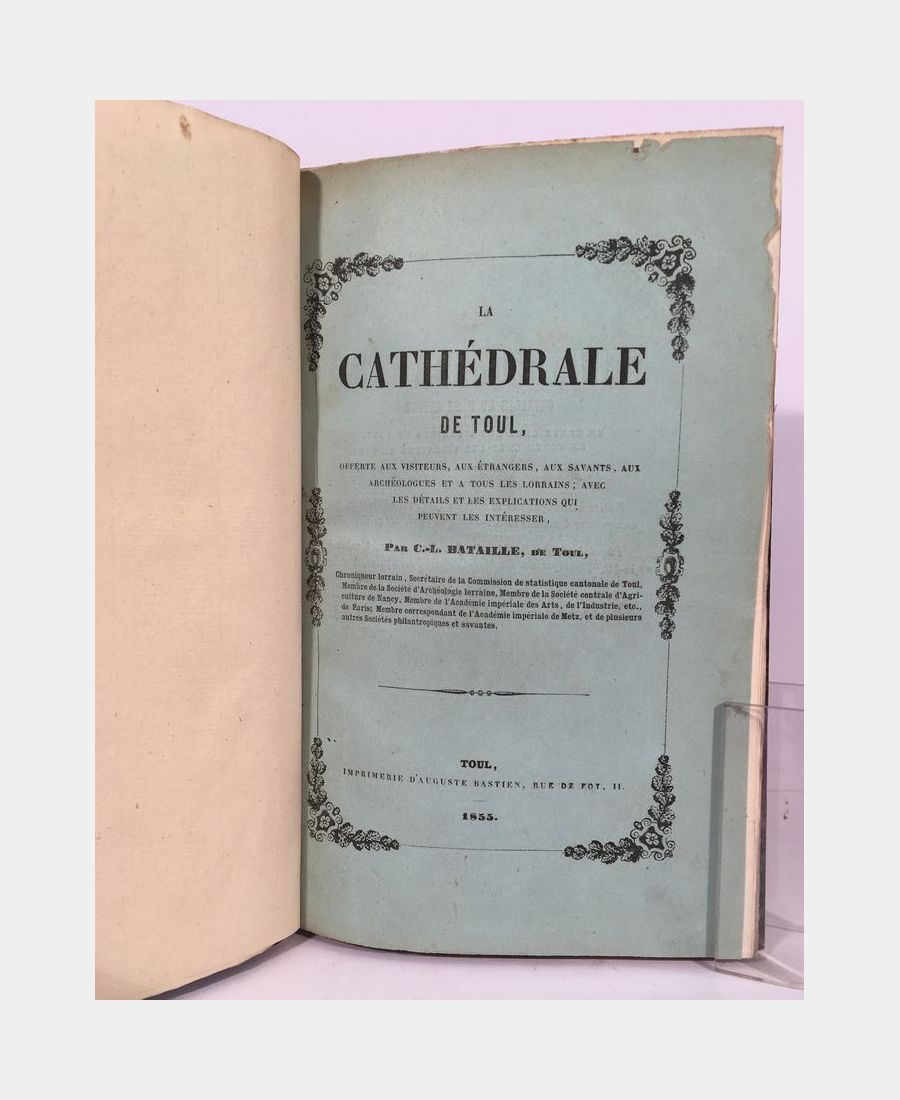 Toul, Imprimerie d’Auguste Bastien, 1855. In-8 (236x150mm), 94 pp. Demi-chagrin, dos à nerfs, titré et daté en queue. Planche gravée hors-texte de la cathédrale. Couverture d’origine conservée. Rousseurs éparses.