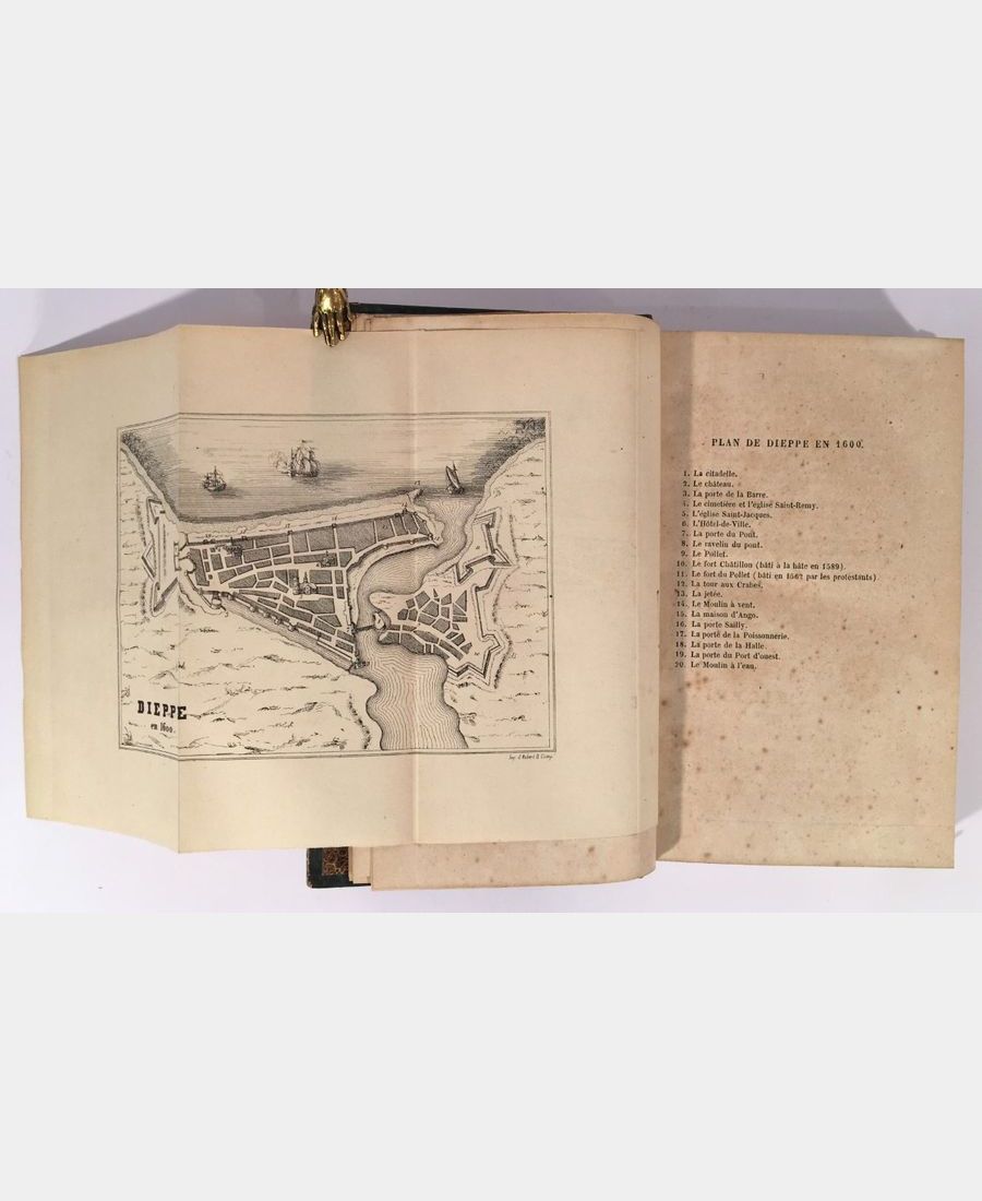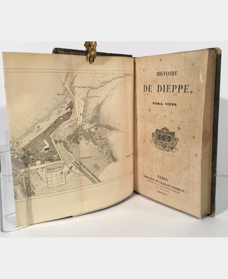 Paris, Gosselin, 1844 ; in-12 (183x118mm), II, 467 pp.. Reliure demi-chagrin vert d’époque, dos à nerfs titré. Exemplaire bien complet de ses deux plans dépliants de Dieppe (l’un en 1844, l’autre en 1600). Rousseurs éparses en début et fin d’ouvrage, coins supérieurs légèrement émoussés.