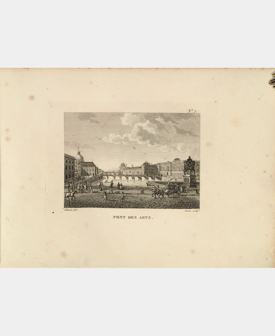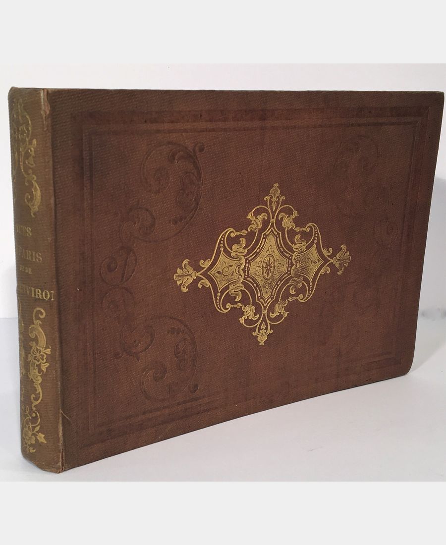 Paris, Chez Le Roi, 1836 ; in-8 de format oblong, titre et 110 planches. Pleine toile à motifs dorés et à froid romantiques. Menus défauts aux mors supérieurs, rousseurs éparses. Exemplaire bien complet de ses planches 110 planches illustrant les principaux monuments de Paris (palais, églises, places, ponts, boulevards). Les dix dernières planches sont consacrées à l’abbaye de Saint-Denis, au château de Vincennes, à Saint-Cloud et Versailles.