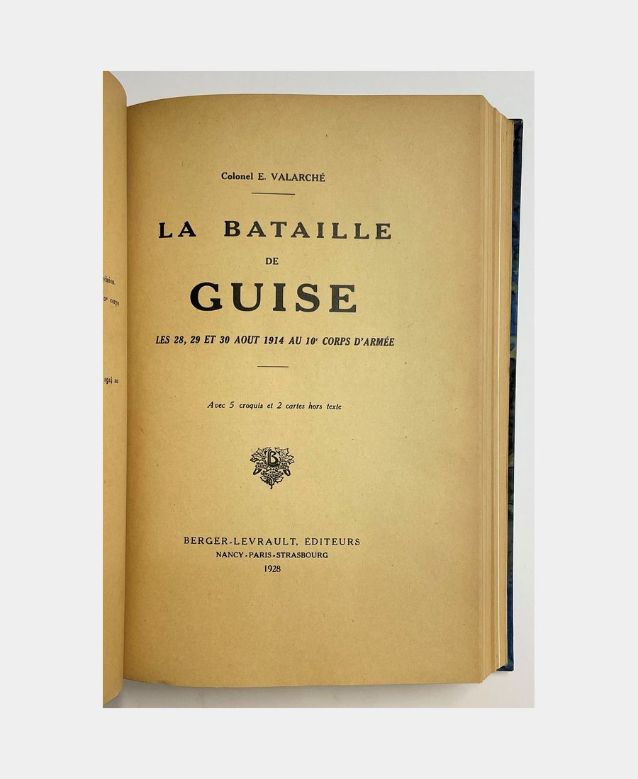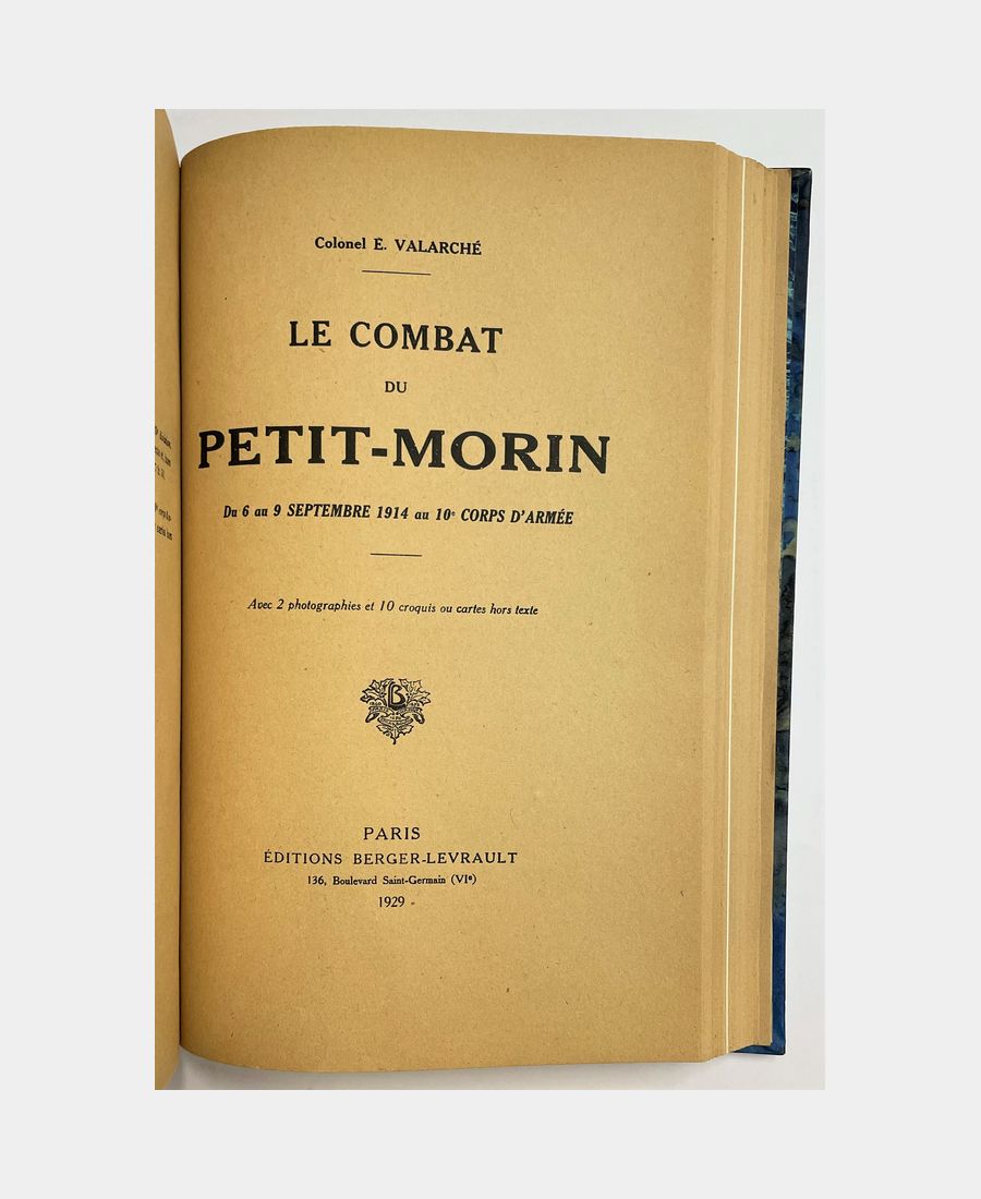 Le Combat d’Arsimont, les 21 et 22 août 1914 à la 19e division (suivi de) La Bataille de Guise, les 28, 29 et 30 août 1914 au 10e corps d’armée (suivi de) Le combat du Petit-Morin, du 6 au 9 septembre 1914 au 10e corps d’armée. Valarché (Edmond, Colonel). 1926 – 1928 – 1929.