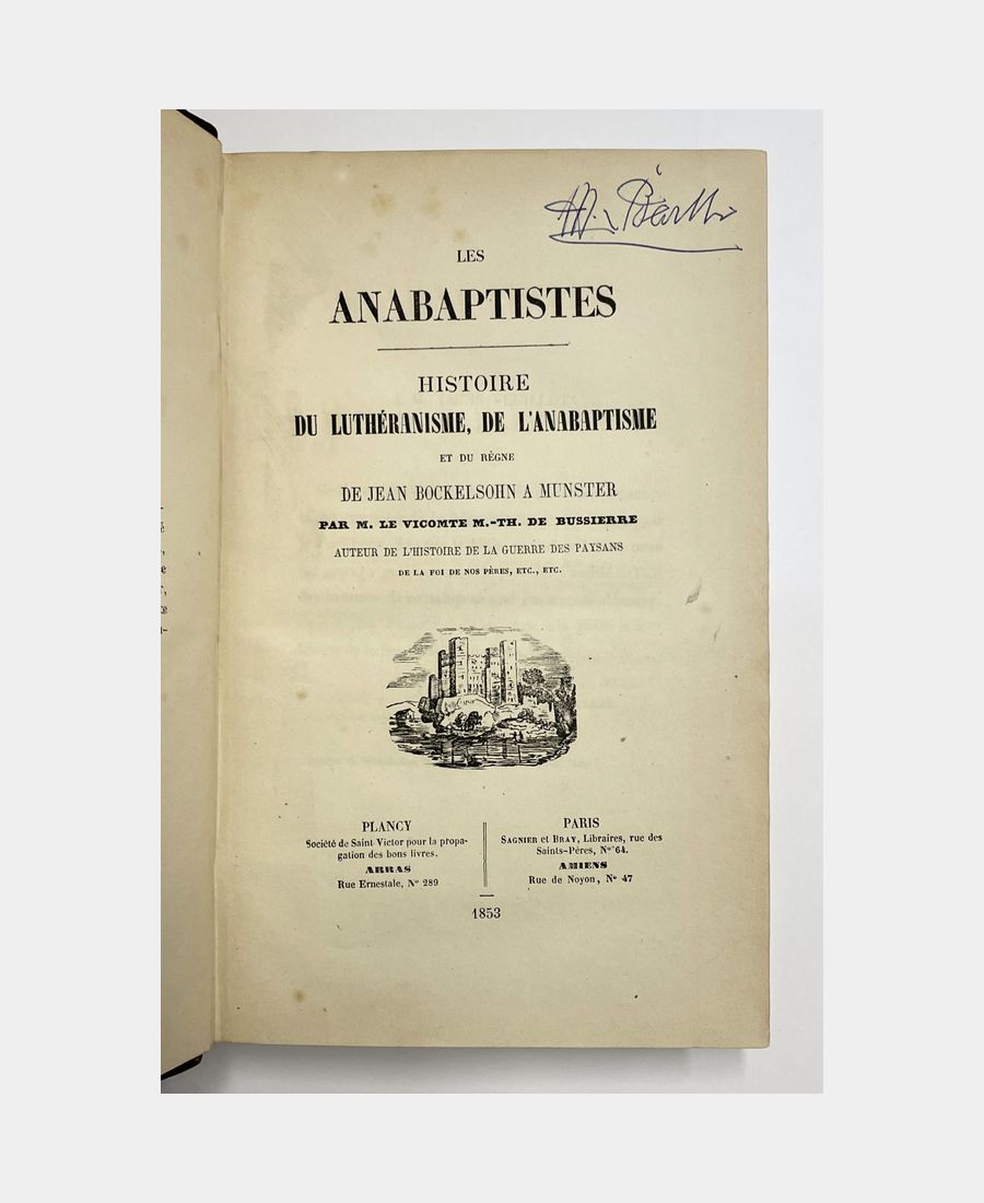 Les Anabaptistes. Histoire du Luthéranisme, de l’Anabaptisme et du règne de Jean Bockelsohn à Munster. BUSSIERE (Théodore Renouard, de). 1853.