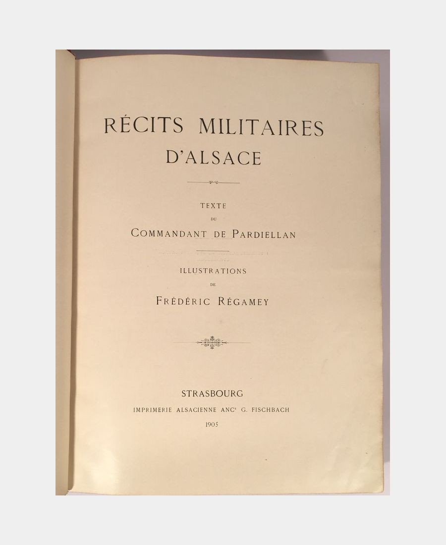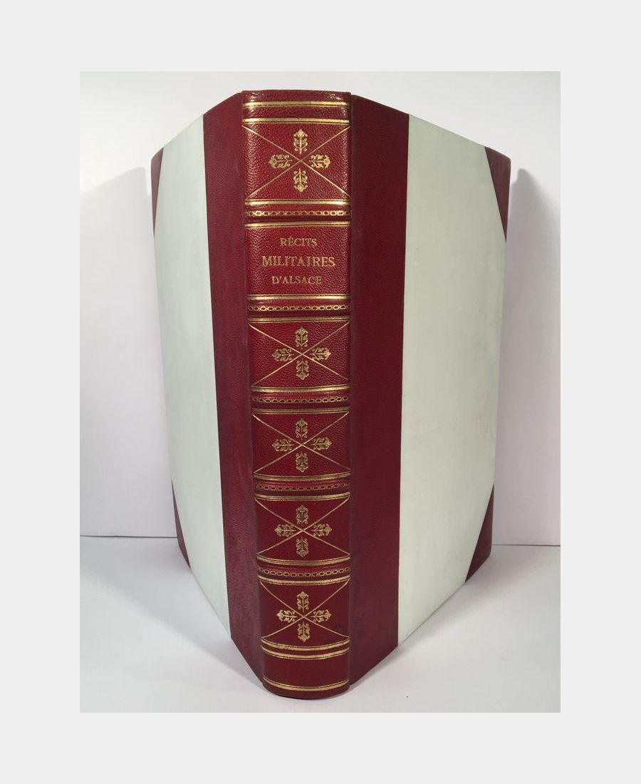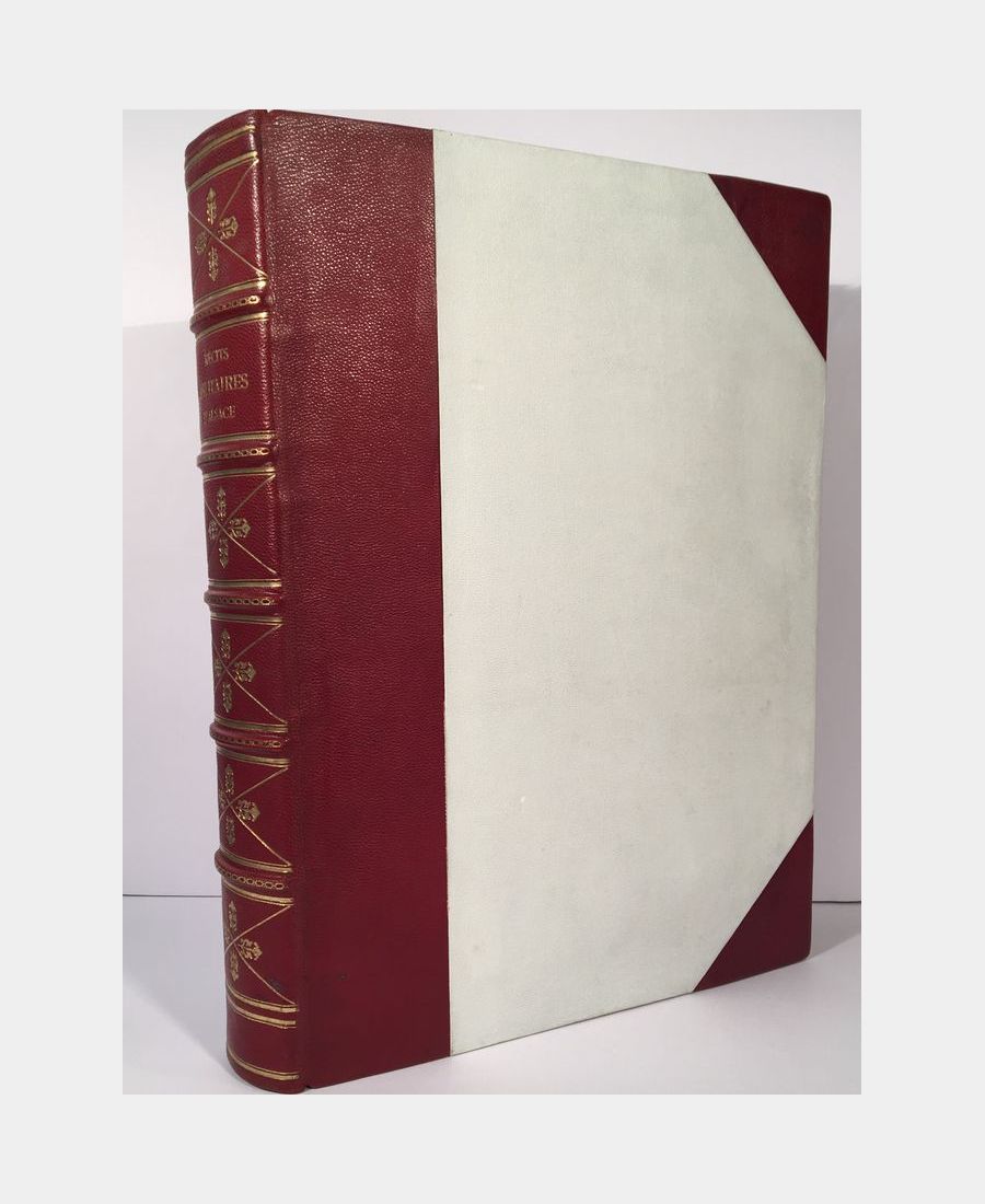 Strasbourg, Imprimerie alsacienne anciennement G. Fischbach, 1905. In-folio (380 x 285 mm), XII, 394 pp.. Demi-chagrin rouge à coins, plats en chagrin blanc, dos à nerfs, titre et caissons ornés de motifs dorés. Très bel exemplaire magnifiquement relié, bien complet des 64 planches et du panorama dépliant.