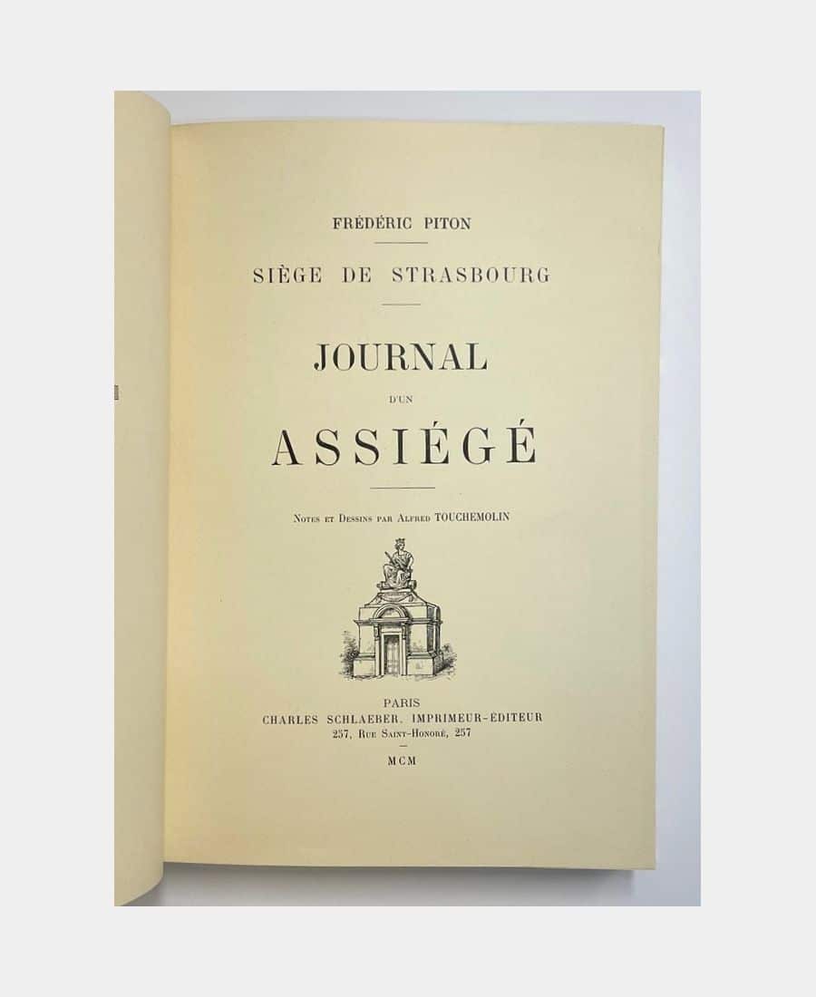 Siège de Strasbourg. Journal d’un assiégé. Notes et dessins par Alfred de Touchemolin. Piton (Frédéric). 1900.