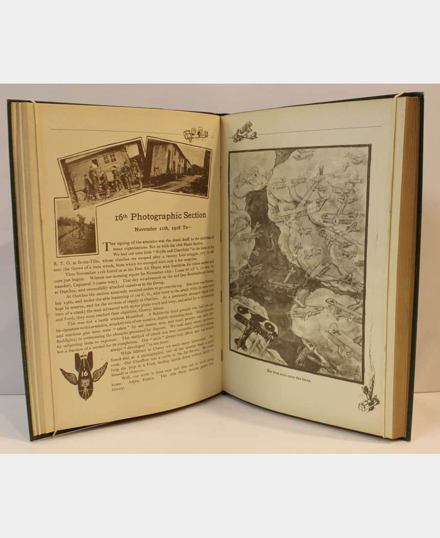 Toul, Headquarters, Air Service, Second Army, 1919. In-4, reliure en toile de l’éditeur. Nombreuses illustrations et caricatures de Hooey, H. D. Lowry, W. J. Enright, Bissel, H. Mayers, etc, de photographies, chansons… Très bel exemplaire.
