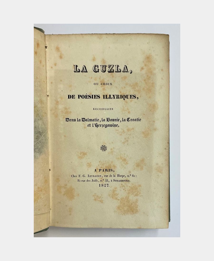 La Guzla, ou Choix de poésies illyriques recueillies dans la Dalmatie, la Bosnie, la Croatie et l’Herzegowine.