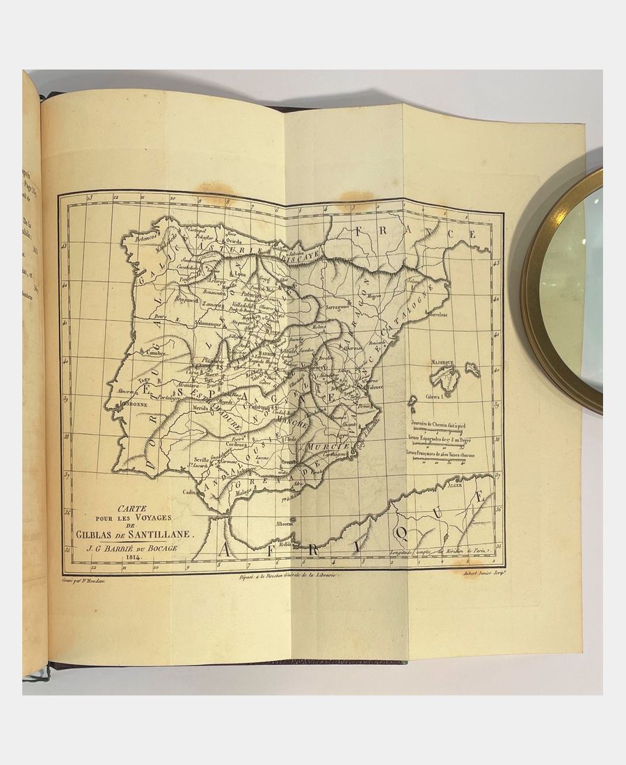 Paris, Chez Lefèvre, libraire, 1825 ; 3 volumes in-8 de XXIV et 386, 456, 386 pages. Demi-chagrins aubergine, dos lisse, titre, tomaison et motif romantique dorés. Rousseurs et pages jaunies, légers frottements aux plats. Mouillure marginale sur une dizaine de page en fin du 1er tome. Bien complet du portrait de l’auteur en frontispice au 1er tome et de la carte dépliante au 3ème tome. Il a été ajouté une gravure au 1er tome. Jolies reliure.