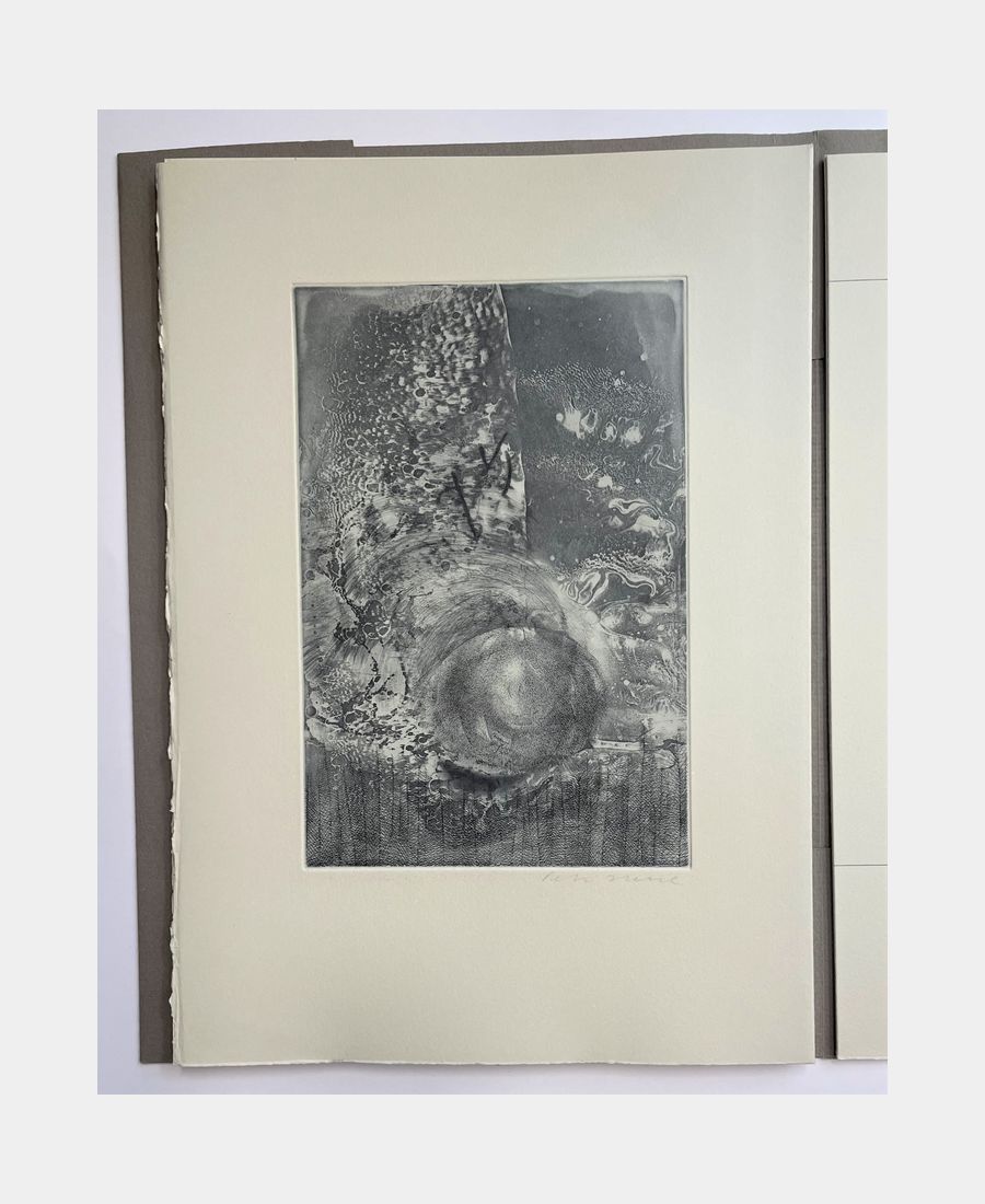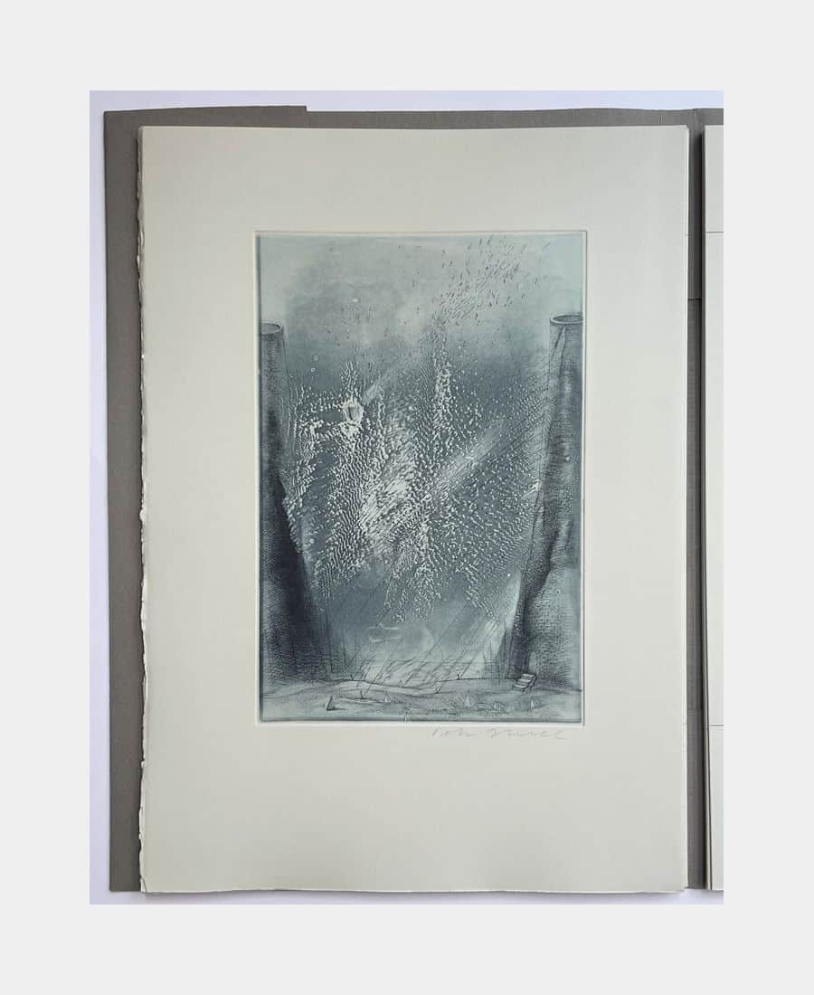 L’Homme au Sable – Thierry Bouchard, 1986 ; in folio en feuilles, sous couverture imprimée rempliée, sous emboitage de l’éditeur. Insolation et marques d’usage sur l’emboitage. Edition originale de quatre contes de Nodier suivis d’un poème et d’un essai biographique. Bien complet des 6 eaux-fortes originales de Petr Herel. Tirage limité à 120 exemplaires numérotés sur vélin de Rives gris perle (n°99). Bel envoi de l’éditeur.